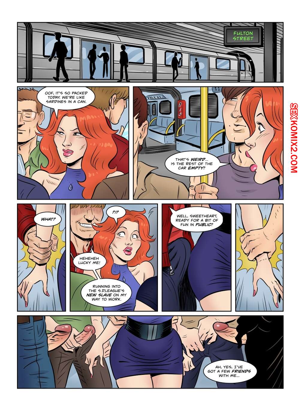 Порно комикс Лига тайного господства. Часть 2. Coax. Англ. Рыжая милфа с большими сиськами любит трахаться, она находит секс в самых неожиданных места. Даже в вагоне метро её все хотят выебать.
