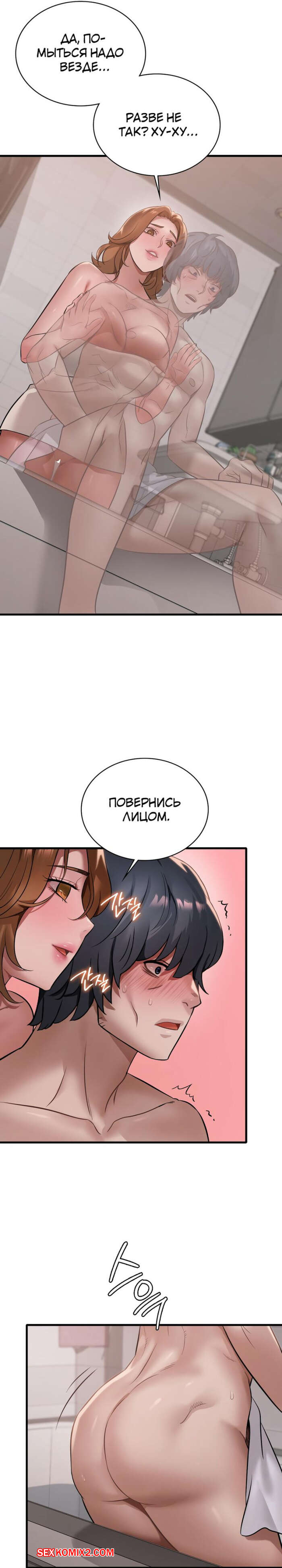 Порно комикс Она хочет опьянеть. Часть 87 и 88. cuhago sipeun gnher Парень пошел искупаться и к нему в ванну пришла сексуальная брюнетка в одном полотенце. Красотка осталась голой перед парнем, после чего стала дрочить его большой хуй.