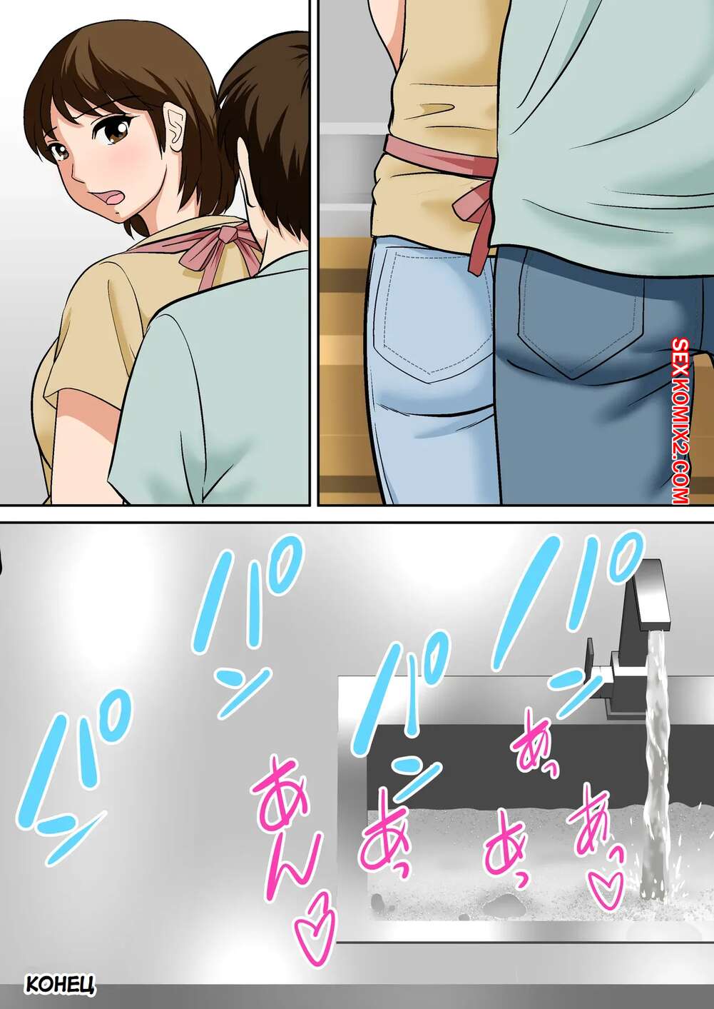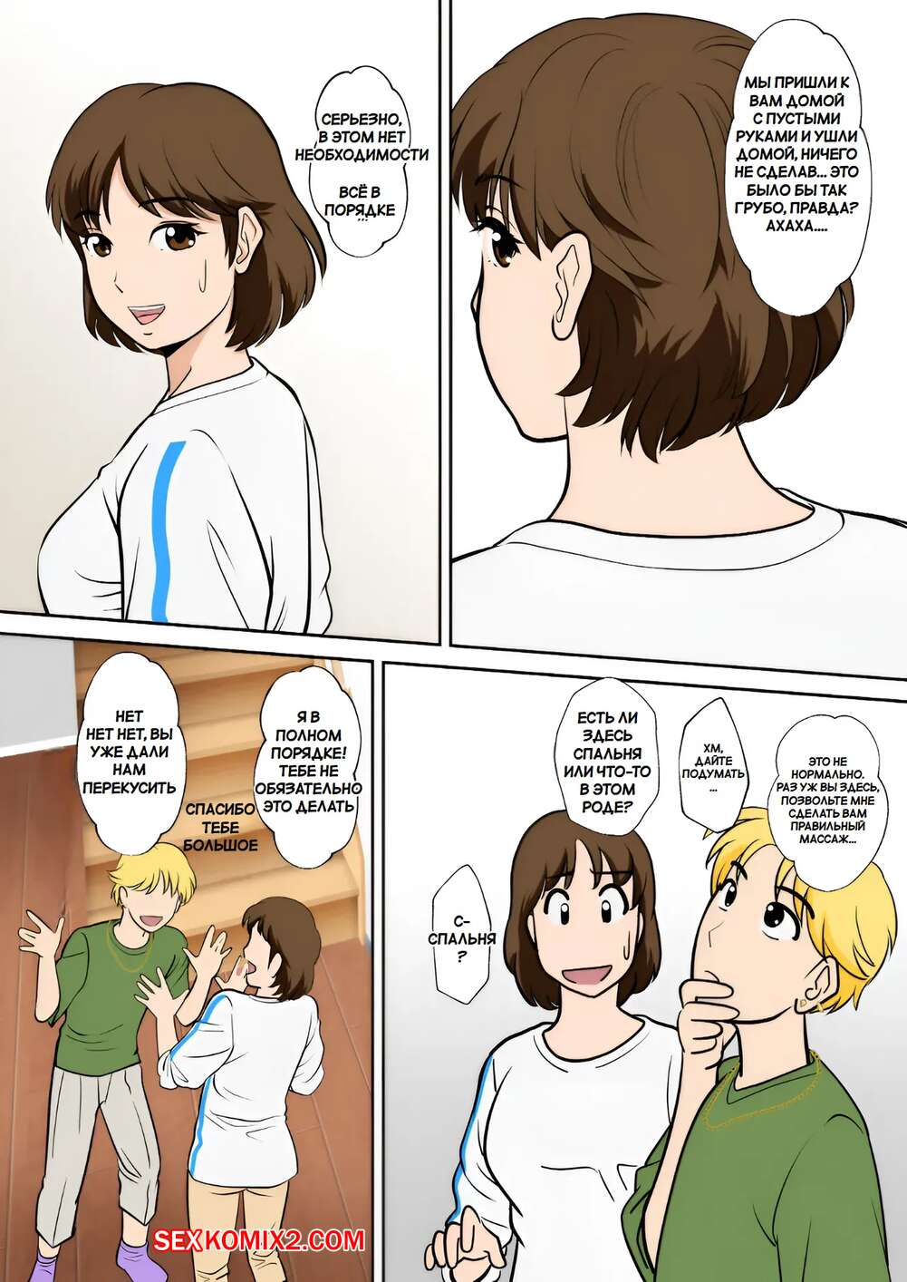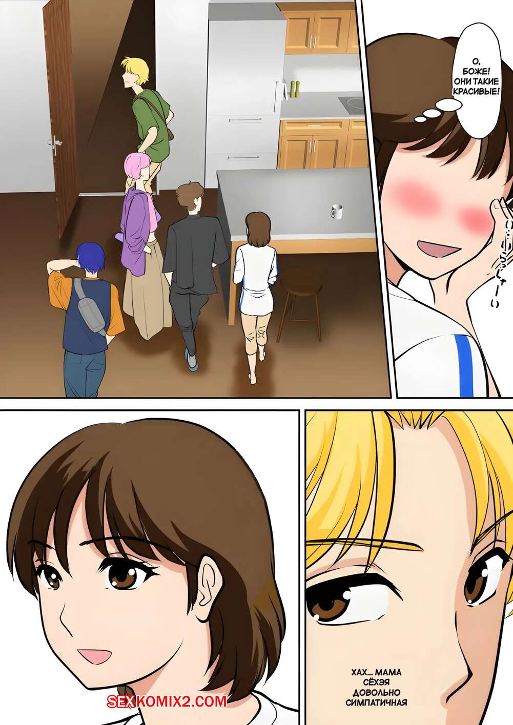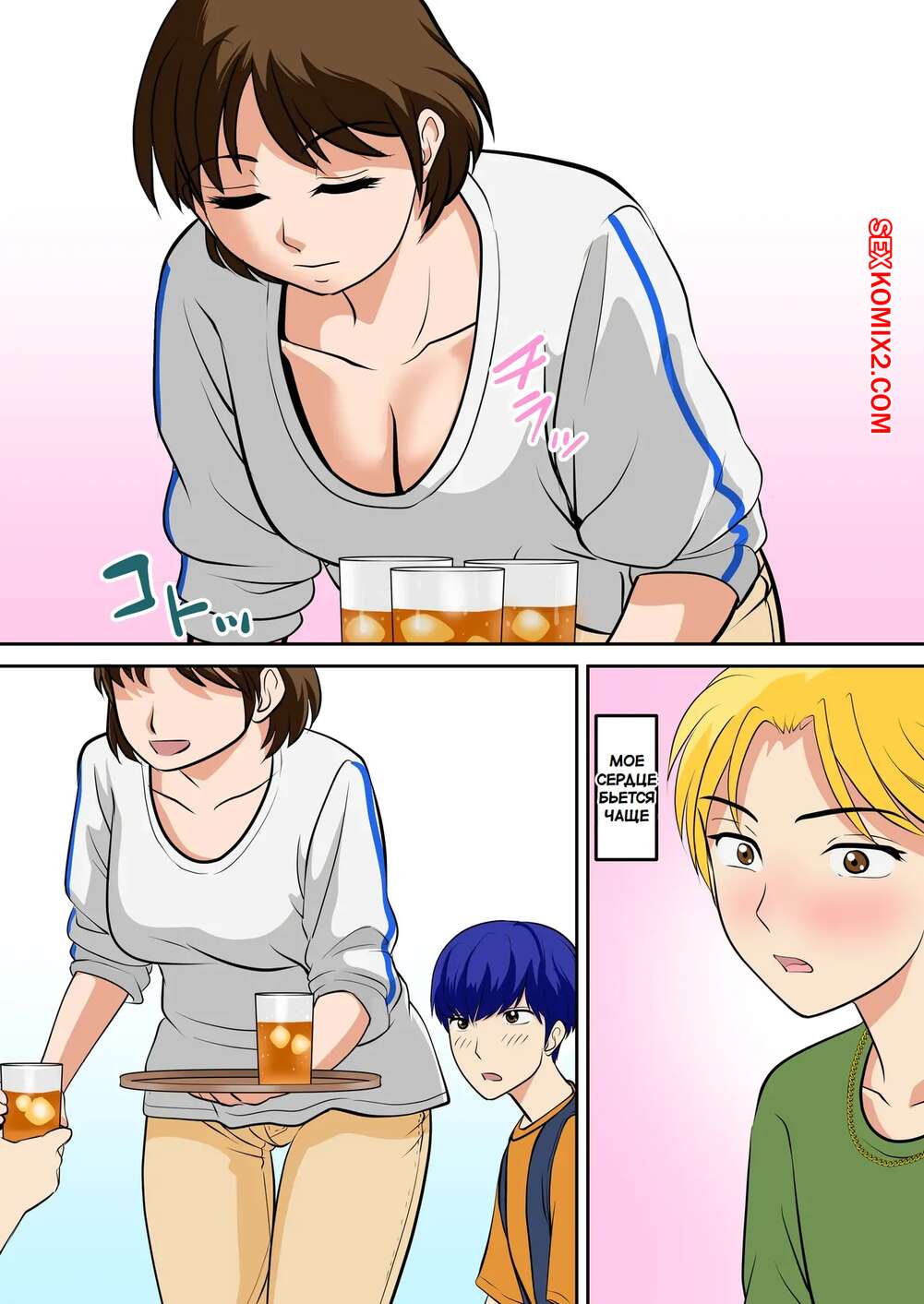 Порно комикс Горячая мамка соблазняет друзей сына. Fuwatoro Opanchu Cake. Молодой парень привел домой своих друзей за школы, а его горячая мамка решила соблазнить гостей и повеселиться. Красотка позвала парней в спальню, где отсосала их хуи и дала себя выебать.