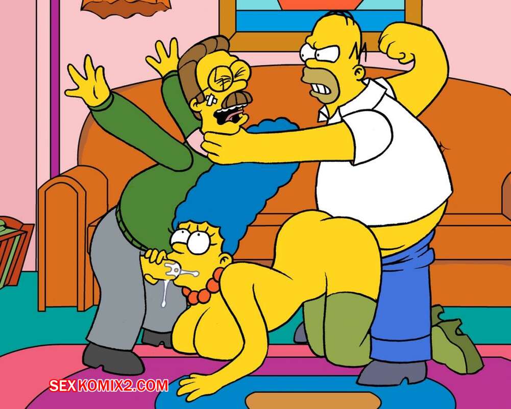 Порно комикс Симпсоны. Вторжение Фландерса 1. Akabur Горячая милфа Мардж решила повеселиться с Фландерсом в присутствии ее мужа. Красотка встала на колени и стала сосать хуй соседа, но Гомеру это совсем не понравилось.