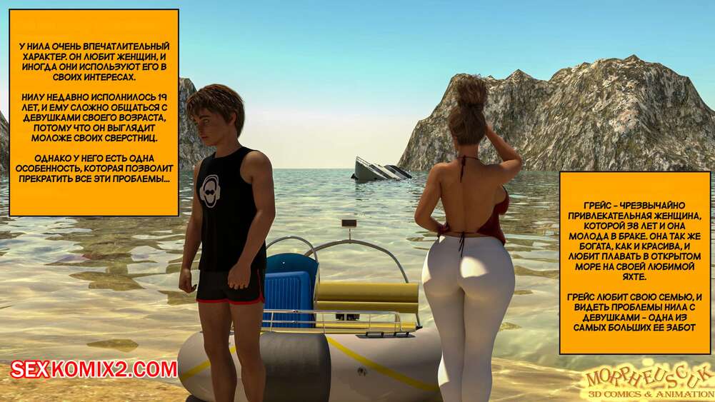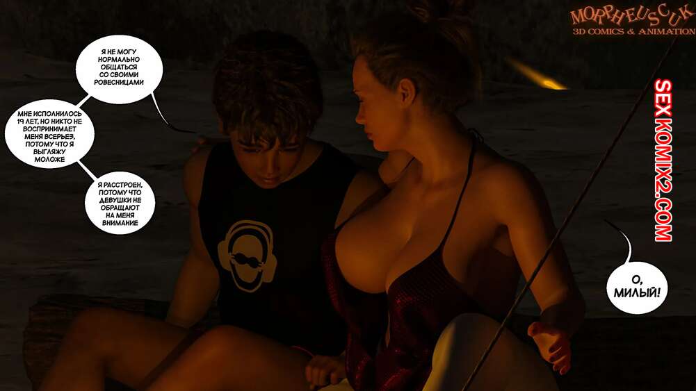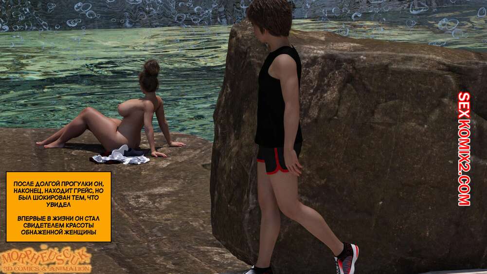 Порно комикс Затерянный остров. Часть 1. Lost Island. Morpheuscuk. Горячая милфа со своим сыном потерпели крушение и оказались на необитаемом острове. Красотка решила снять напряжение и пошла искупаться, а ее сын наблюдал за ней и дрочил свой член.
