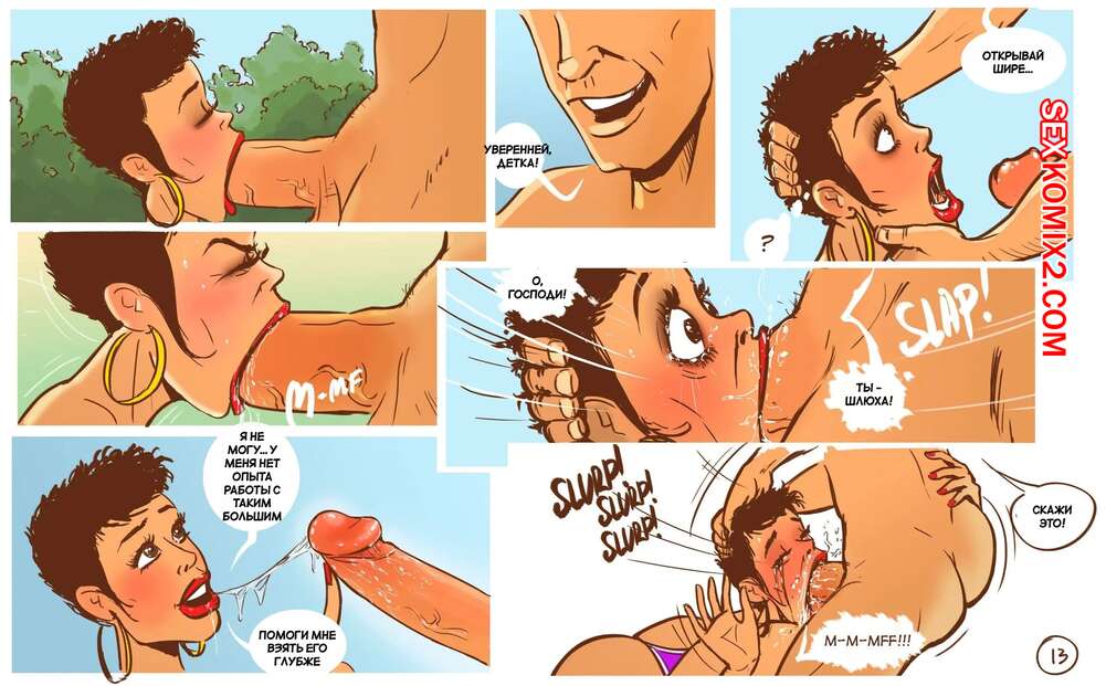 Порно комикс Маргарита XL. Margarita XL. Disarten. Горячая милфа отправилась в поход со своим мужем, где она застала юного парня с огромным стояком. Красотка встала на колени и отсосала хуй парня, после чего дала ему себя выебать.