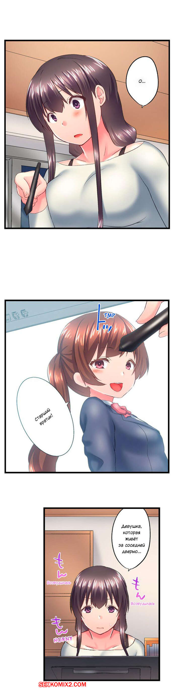 Порно комикс Мой брат проскользнул внутрь меня в ванне. Часть 115 и 116 и 117. Kaiduka Горячая брюнетка была очень возбуждена и решила повеселиться со своим братиком. Красотка разделась и отсосала большой хуй парня, после чего дала ему выебать свою пизденку.