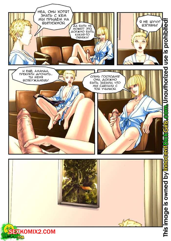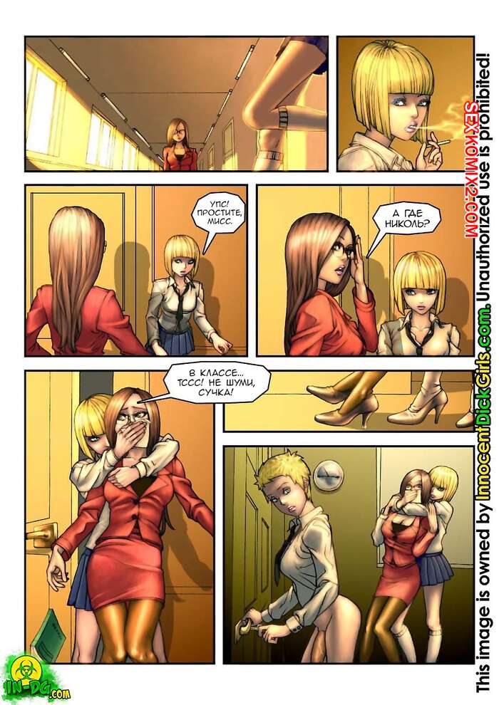 Порно комикс Практикантка. Innocent Dick Girls Две блондинки с большими членами решили повеселиться с практиканткой в их школе. Они раздели девушку и дали ей отсосать свои большие хуи, после чего выебали ее во все дырочки.