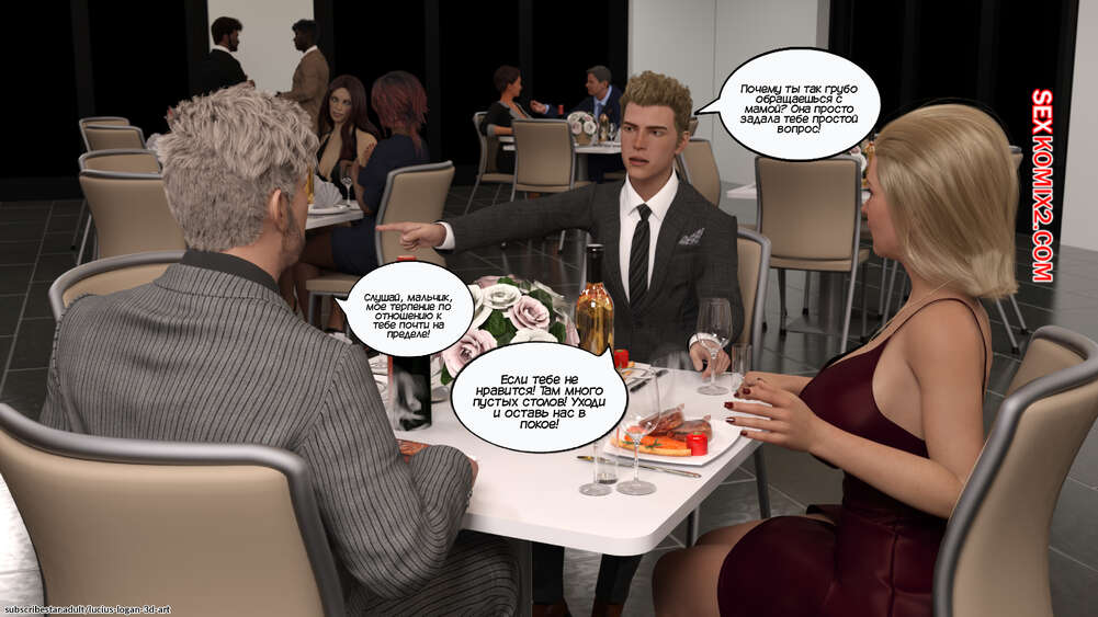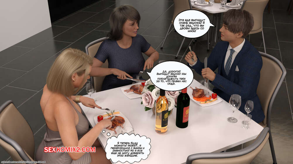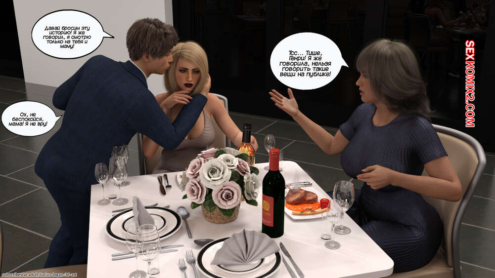 Порно комикс Моя новая девушка. Часть 5. My New Girlfriend. Lucius Logan У Генри все хорошо складывается на работе, поэтому он решил порадовать маму и свою сестренку дома. Парень принес пиццу и вино, чтобы отлично провести вечер с двумя красотками.