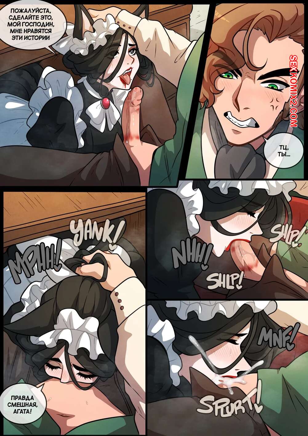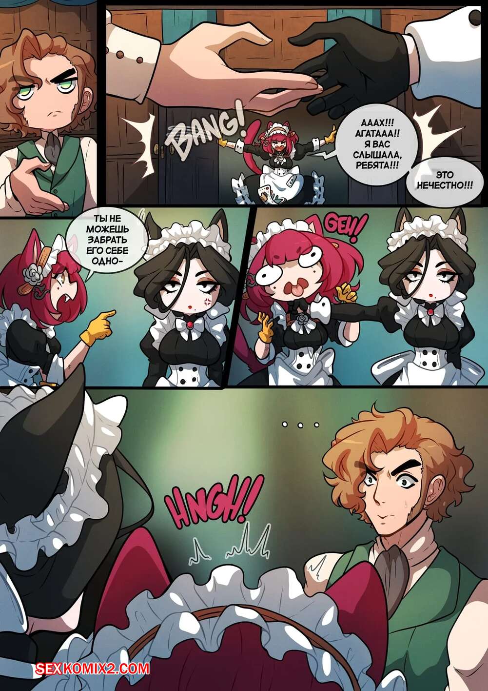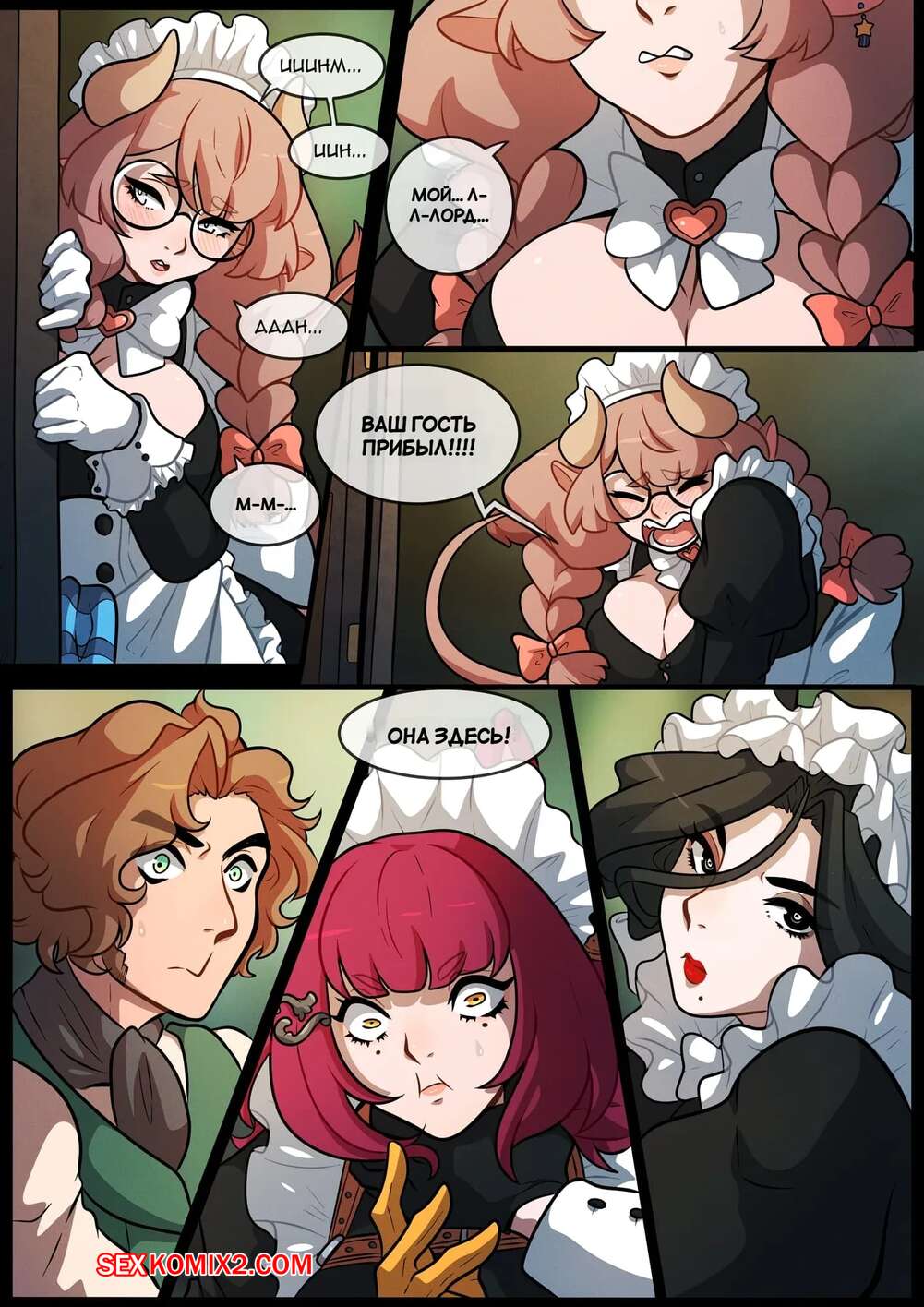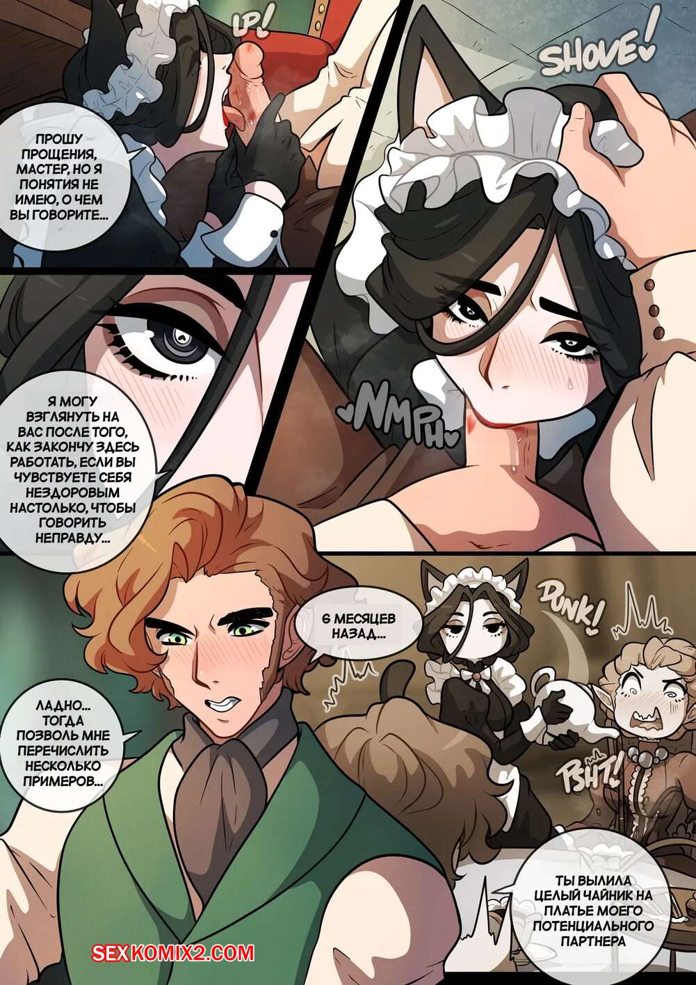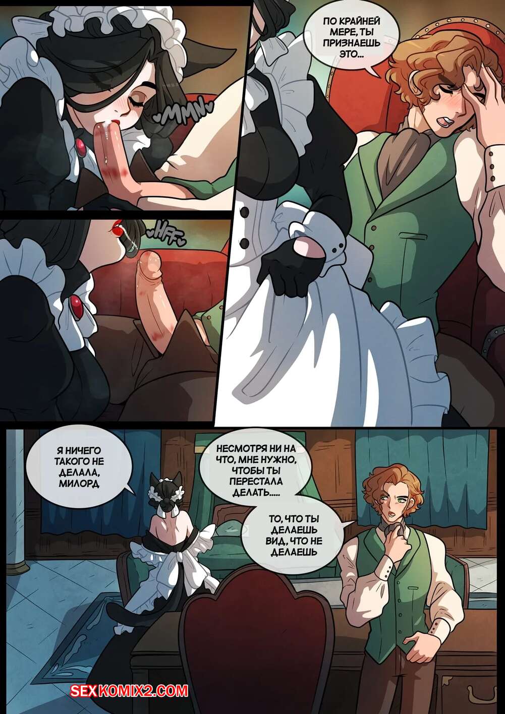 Порно комикс Вредная прислуга. Meddlesome Maids. Kinkymation. Горячая горничная была очень возбуждена и решила повеселиться со своим мастером. Она разделась и отсосала большой хуй парня, после чего раздвинула ножки и дала себя выебать.