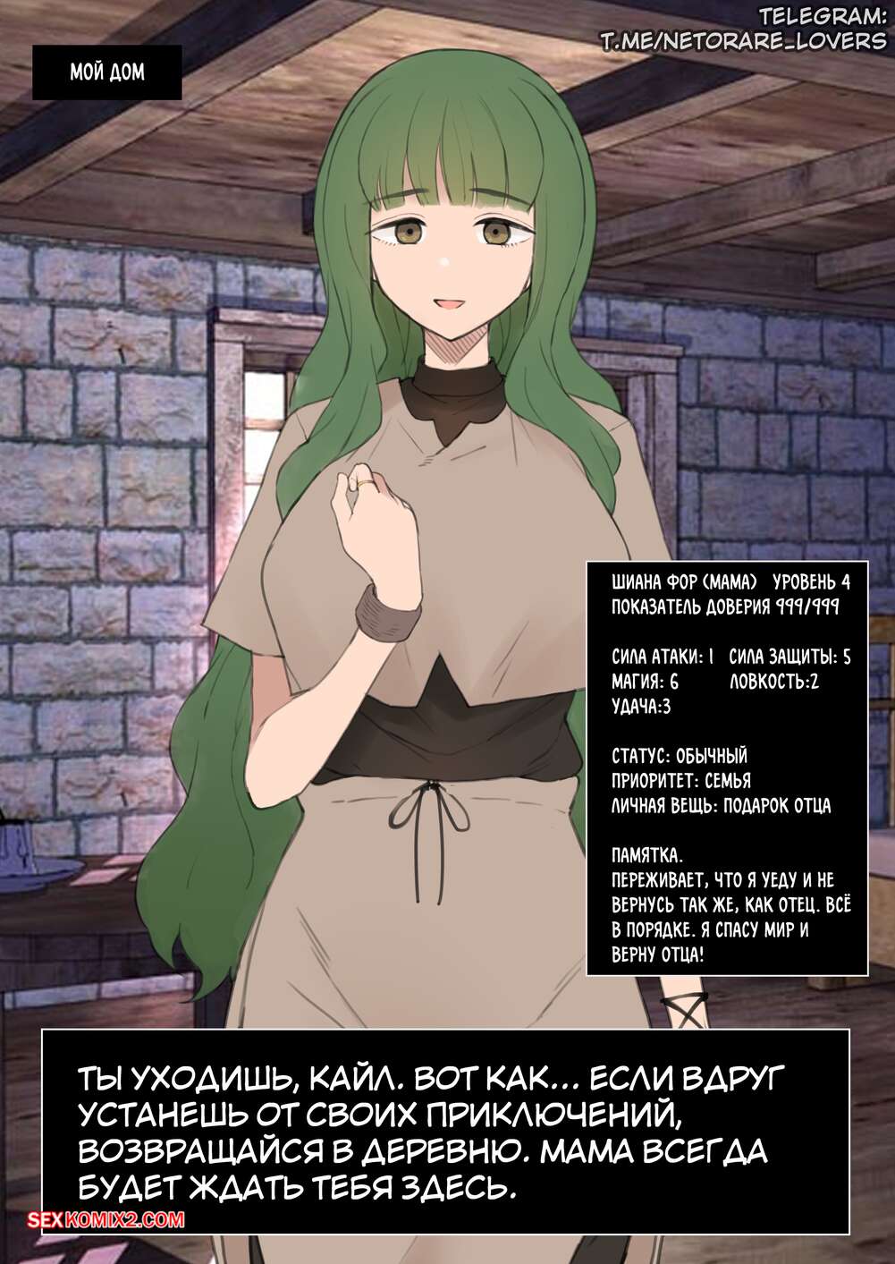 Порно комикс Shujinkou ga Bouken shite iru Aida ni Saisho no Mura de Netorarete iru Mama Парень встретил на улице сексуальную красотку и пригласил ее к себе, чтобы повеселиться. Девушка встала на колени и отсосала большой хуй парня, после чего дала ему себя выебать.