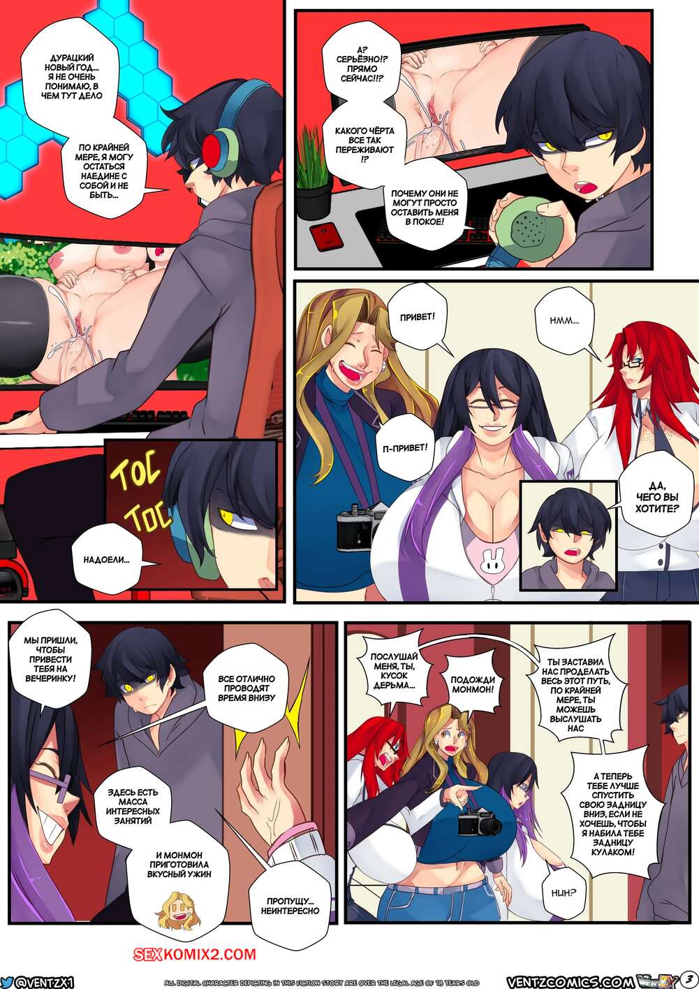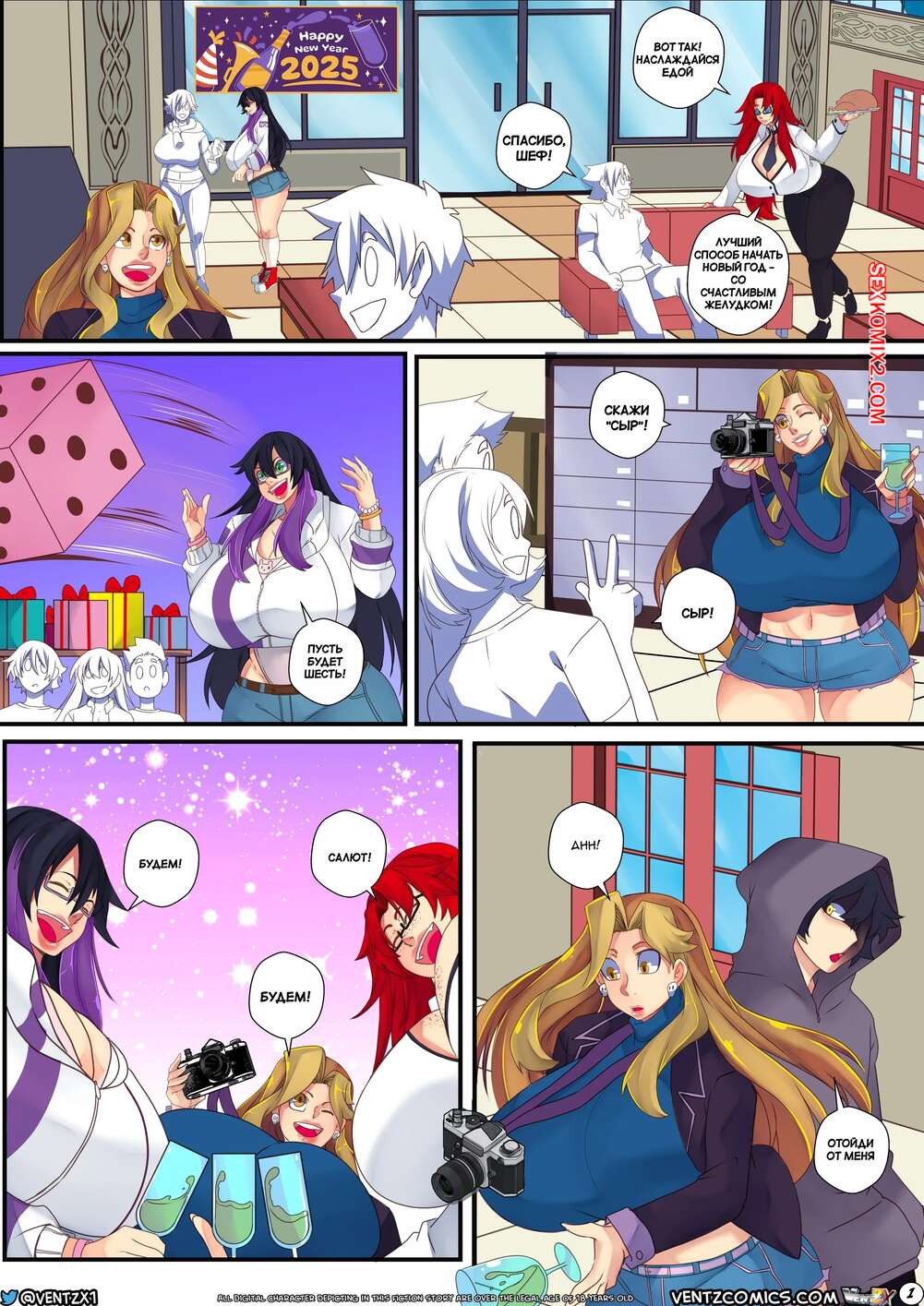 Порно комикс Озорная новогодняя ночь. Naughty New Years Eve. Ventz Comics. Три возбужденные милфы решили повеселиться с молодым пареньком. Они разделись и отсосали его большой хуй, после чего раздвинули ножки и дали себя хорошенько выебать.