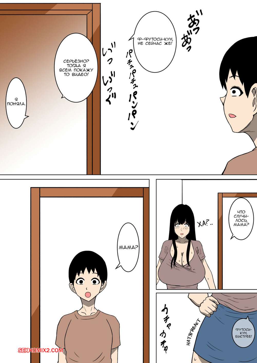 Порно комикс Мама, которая внезапно поглупела. Часть 1. Doujin Mukashibanashi Юный парень соблазнил горячую мамку своего друга большим членом. Красотка раздевается и сосет хуй паренька, после чего раздвигает ножки и дает ему себя хорошенько выебать.