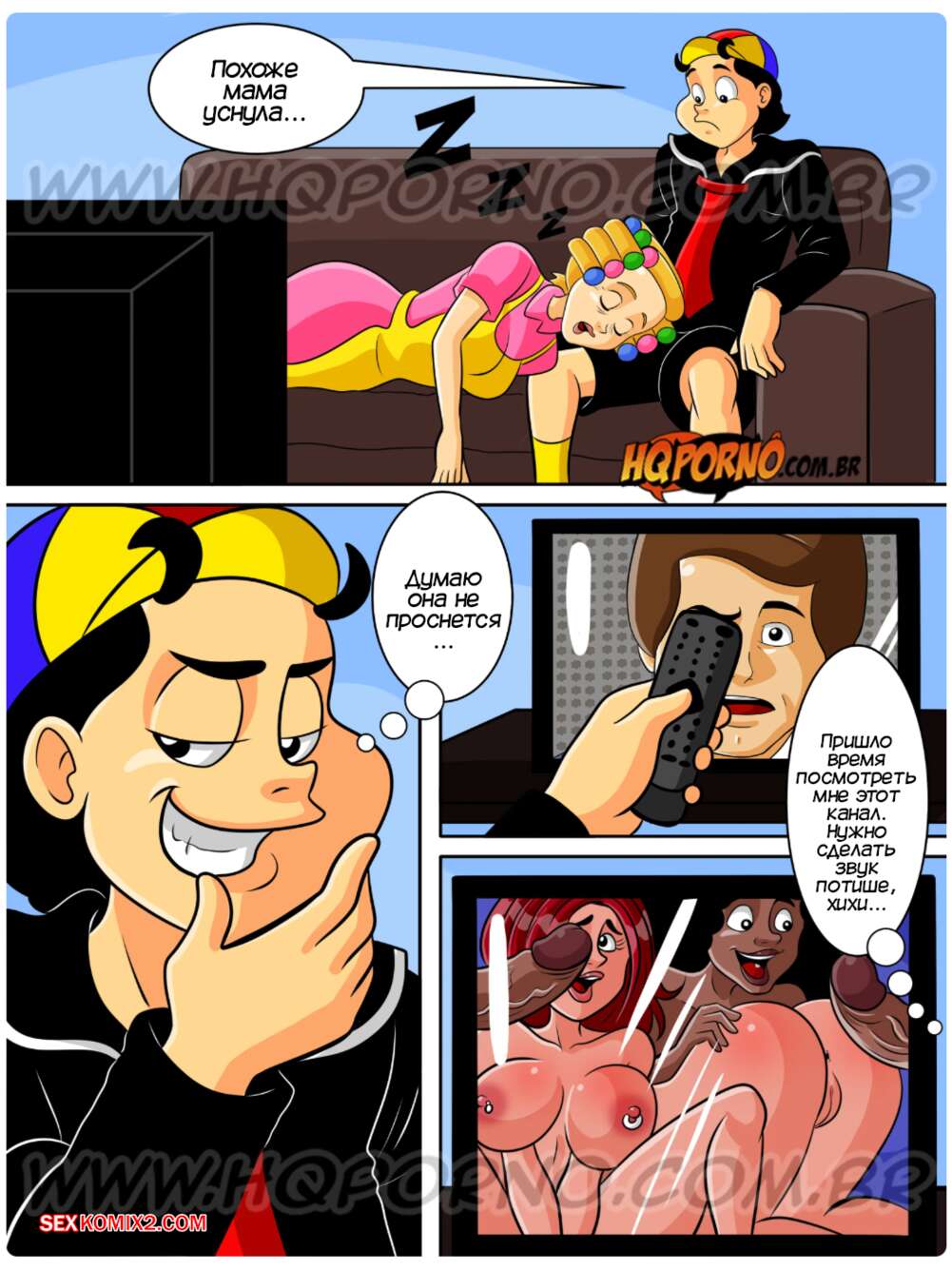 Порно комикс Чавиньо. Часть 23. Chavinho. HQporno Чавиньо и Чика подглядывали, как горячая милфа сосет член их друга Кику. Ребята возбудились и решили повеселиться. Девушка встала на колени и отсосала хуй друга, после чего дала ему себя выебать.