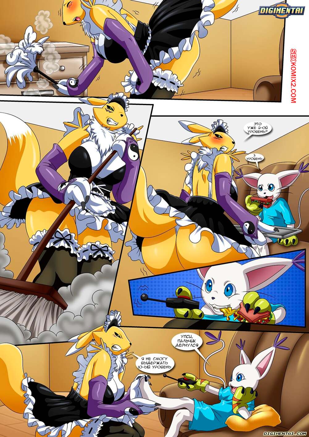 Порно комикс Digimon. Грязные игры. Dirty Gamers. Palcomix Горячая красотка встретила парня курьера в сексуальном наряде, желая повеселиться. Она встала на колени и отсосала большой хуй парня, после чего дала ему себя хорошенько выебать.