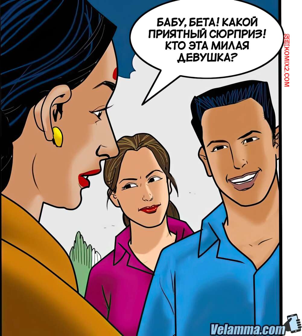 Порно комикс Веламма. Часть 54. Velamma. Velamma Горячая брюнетка не очень опытная в сексе, поэтому ее парень обратился за помощью к Веламме. Милфа вместе с молодой девушкой вместе отсосали хуй парня, после чего он их как следует выебал. Урок секса прошел отлично.