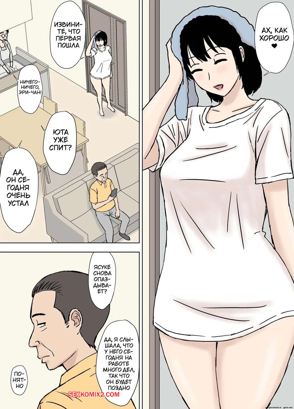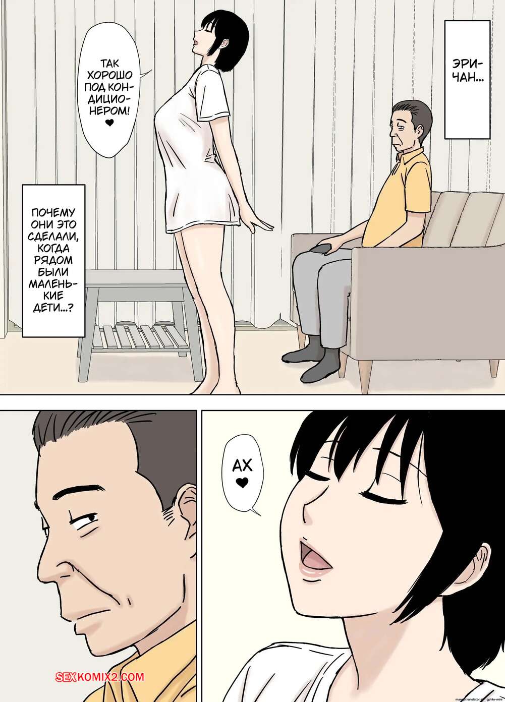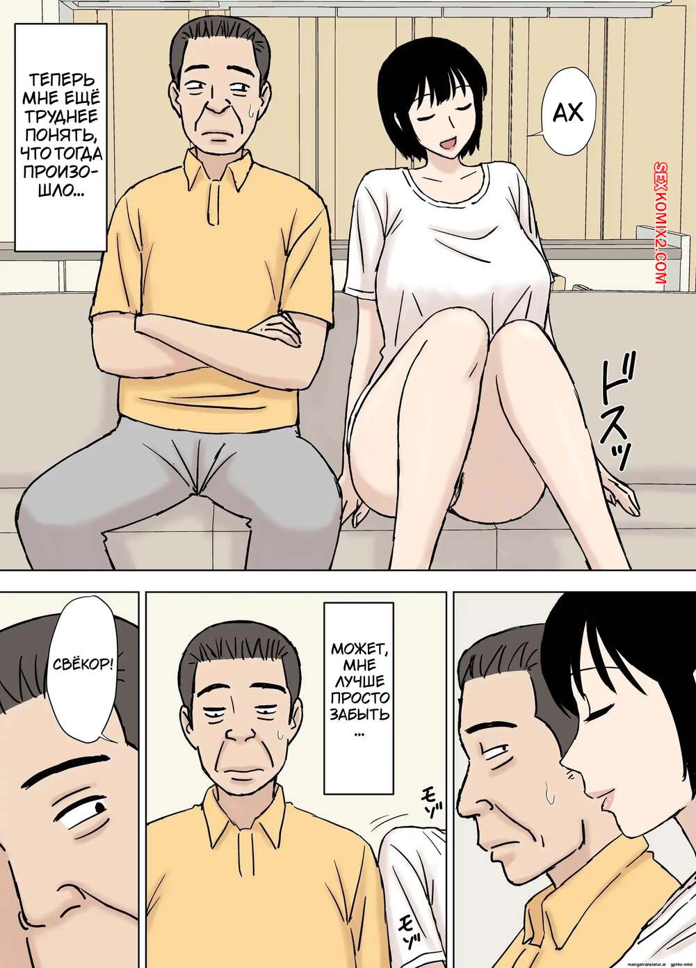 Порно комикс Свёкр развлекается с распутной невесткой. Urakan Горячая брюнетка осталась дома наедине со своим свекром и стала его соблазнять, желая повеселиться. Красотка разделась и отсосала хуй старика, после чего дала ему себя выебать.