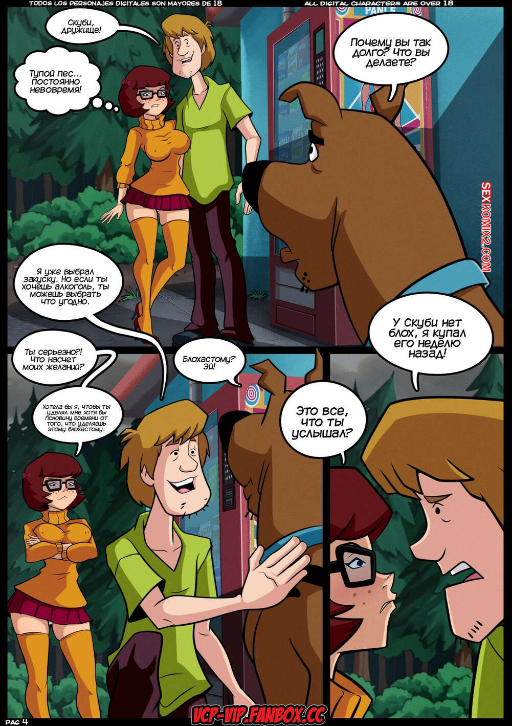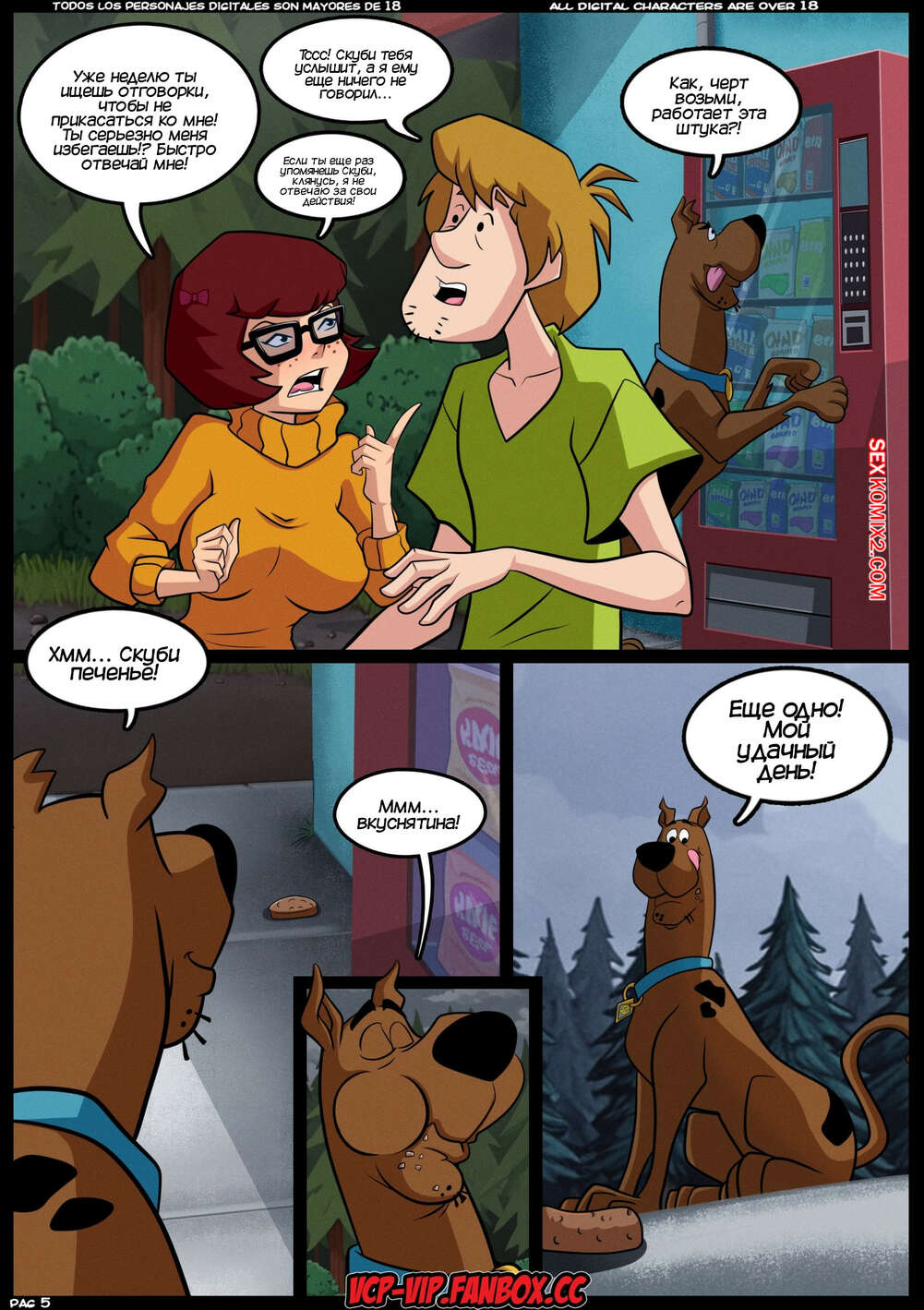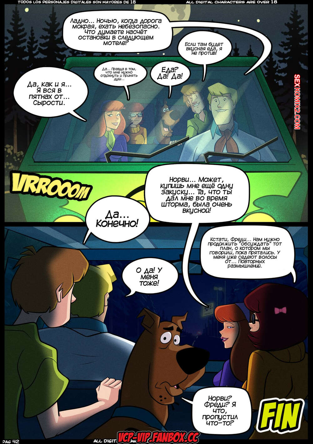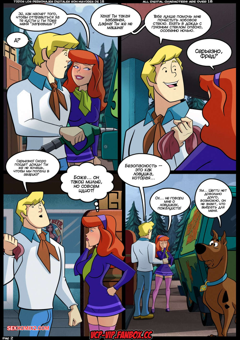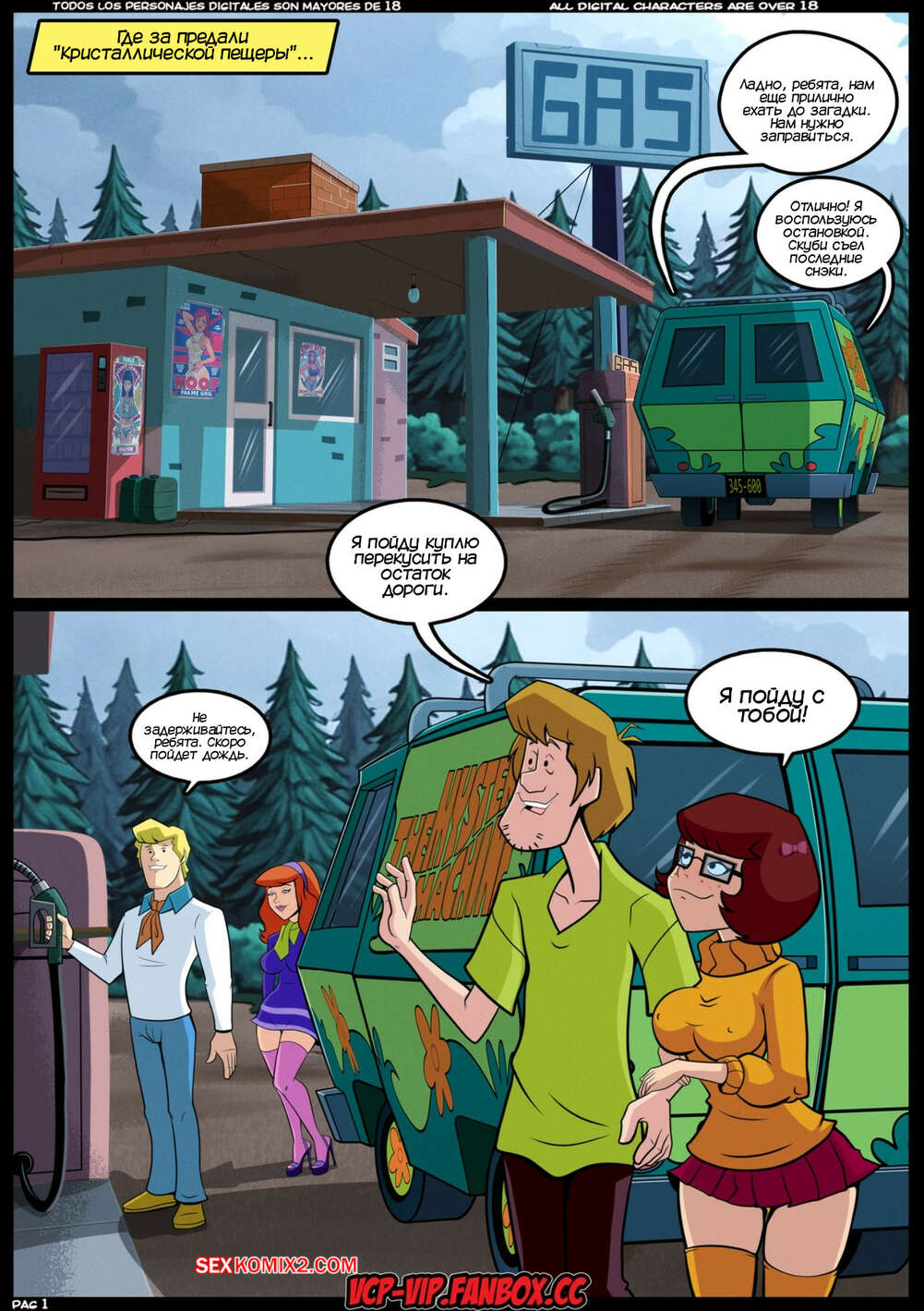 Порно комикс Скуби Ду. Тайны S.X. Горячая буря. MISTERIOS S.X. Tormenta Caliente. Croc Команда Скуби Ду отправилась расследовать очередную загадку. Они остановились на заправке, где Шегги и Велма пошли купить чтото перекусить. Дафна стала намекать Фреду трахнуть ее, но парень слишком глуп, чтобы понять намеки подруги.