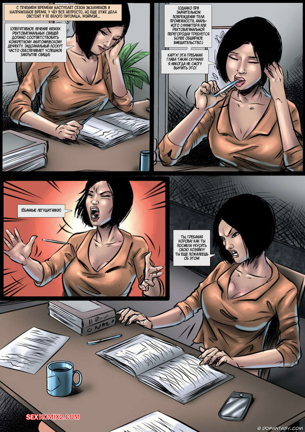 Порно комикс История о рабыне китаянки. Часть 2. A Tale of Chinese Slavery. Celestin Горячая китаянка продолжает пользоваться своей рабыней и дает ей отлизать свою пизденку. Затем она зовет парней, чтобы они как следует выебали блондиночку.