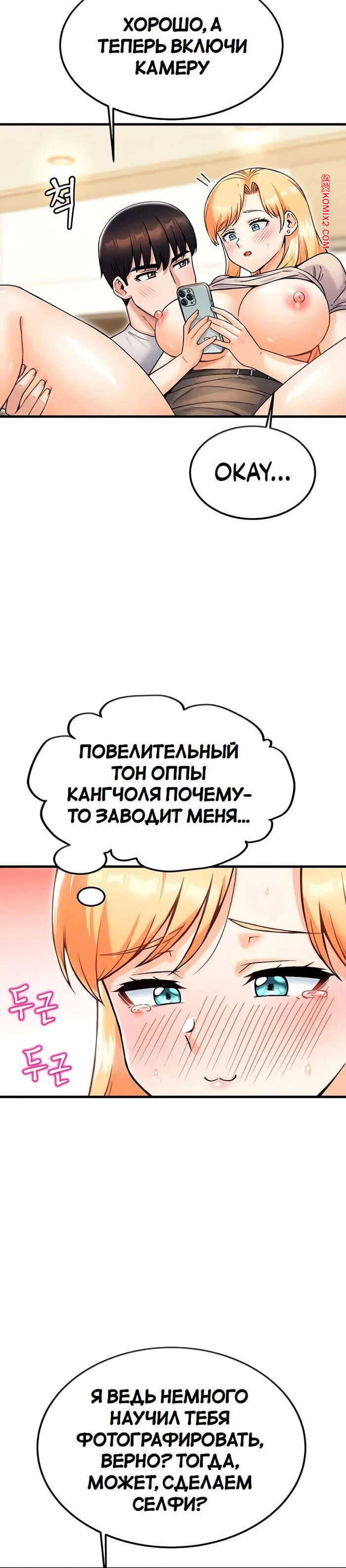 Порно комикс Боссы Канчоля. Часть 22. gangcheol ui sajangnimdeul Парень с девушкой были очень возбуждены и решили повеселиться. Блондиночка разделась и раздвинула ножки перед парнем, после чего дала ему выебать свою пизденку.
