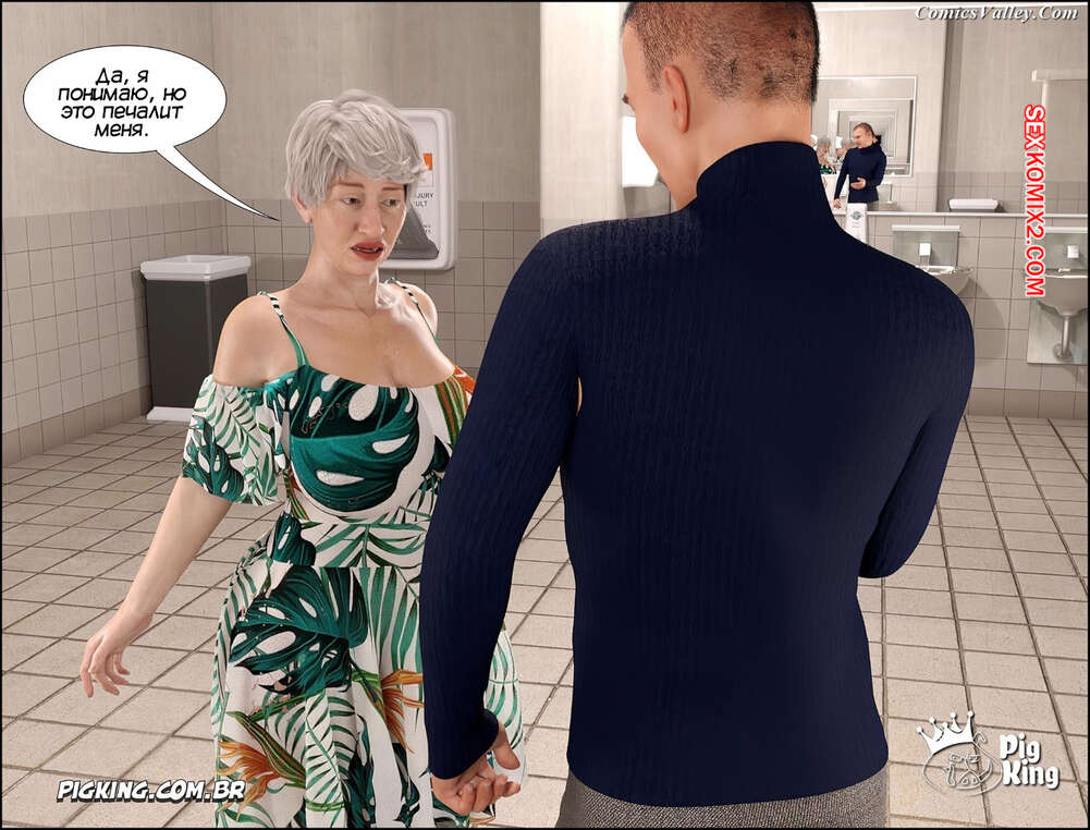 Порно комикс Гаммер. Баттерфейс. Часть 9. Gammer. Butterface. PigKing Доусон с кайфом трахал Мейбл в общественном туалете, но их спалил работник, который собирался вызвать полицию. Доусон предложил ему устроить групповуху с сексуальной старушкой в обмен на то, чтобы он не вызывал копов.
