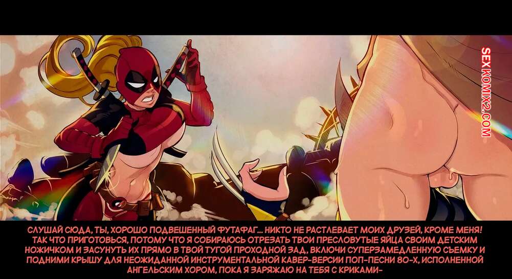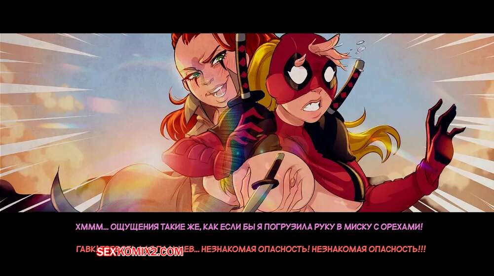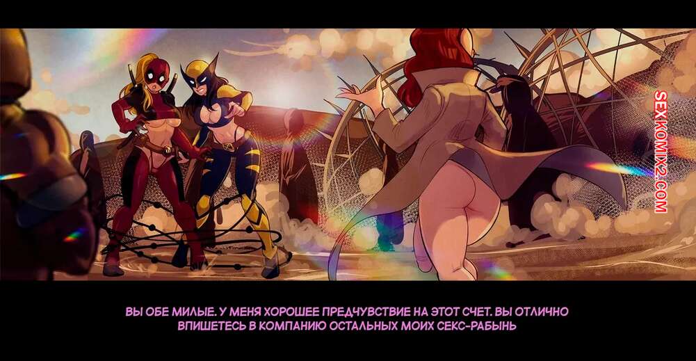 Порно комикс Marvel. Леди Дэдпул и леди Россомаха. Lady Deadpool Vs Wolverine Lady. Tracy Scops Красотки леди Дэдпул и леди Россомаха попалин в плен к Касандре Новы. Злая сучка наколдовала кучу порталов и выебала девушек во все дырочки, от чего они получили огромное удовольствие.