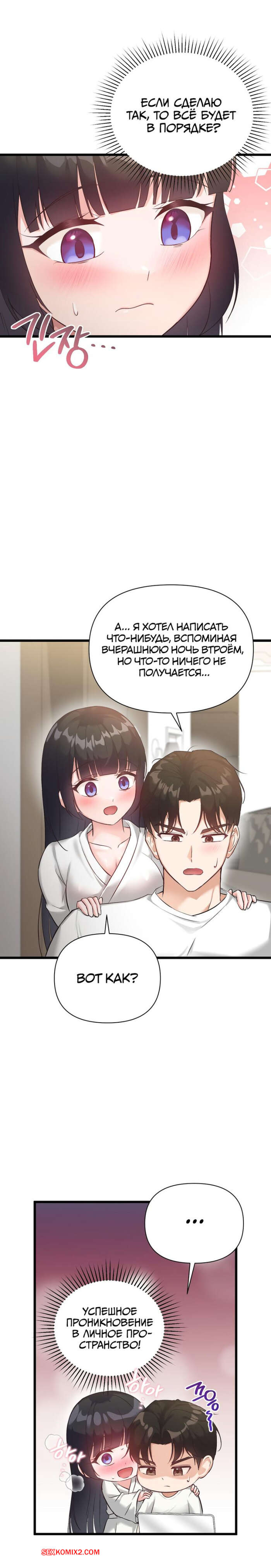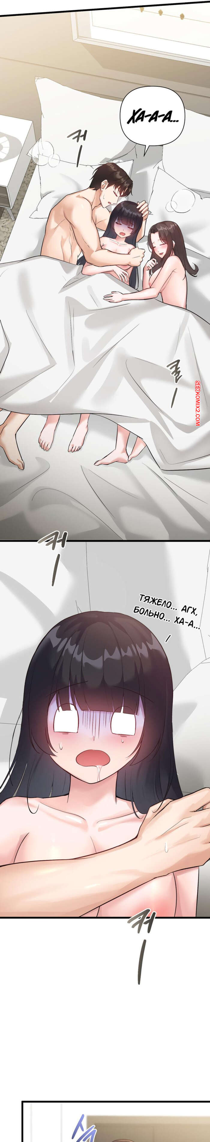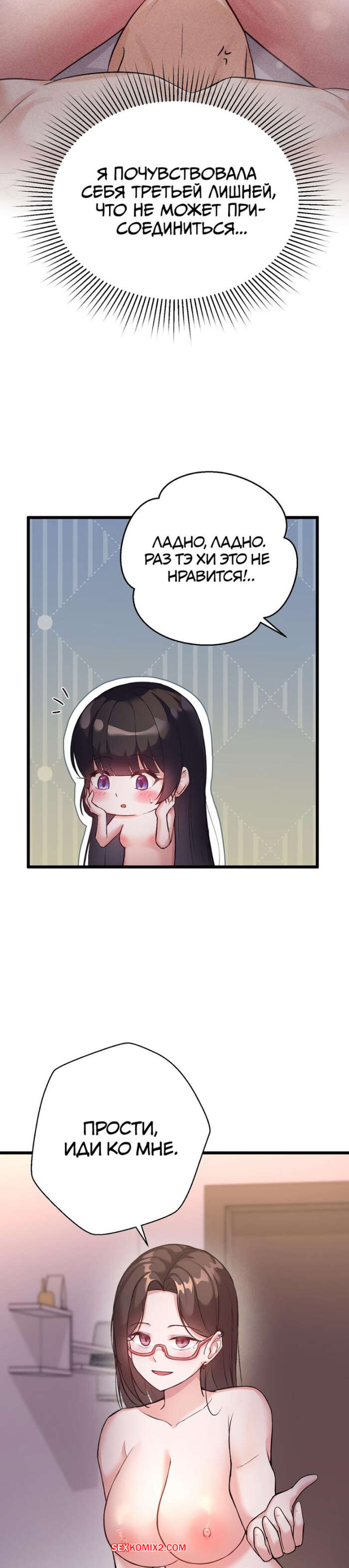 Порно комикс Невинная девушка. Часть 21 и 22 и 23. sungyeolXsonyeo Парню удалось соблазнить двух горячих брюнеток одновременно. Красотки разделись и стали сосать большой хуй парня, после чего раздвинули ножки и дали ему себя выебать.