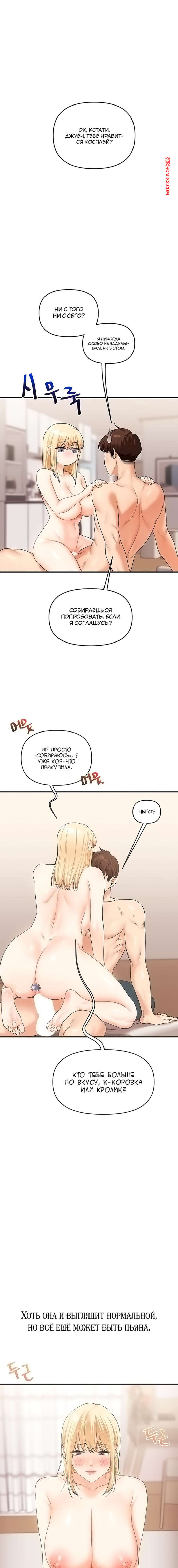 Порно комикс Реверсивные отношения. Часть 43 и 44 и 45. gwangyeyeogjeon Горячая блондинка была очень возбуждена и решила повеселиться со своим дружком. Она разделась и стала сосать его большой хуй, после чего к ним присоединилась брюнеточка, чтобы устроить групповуху.