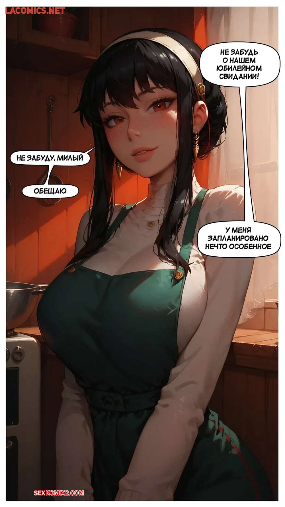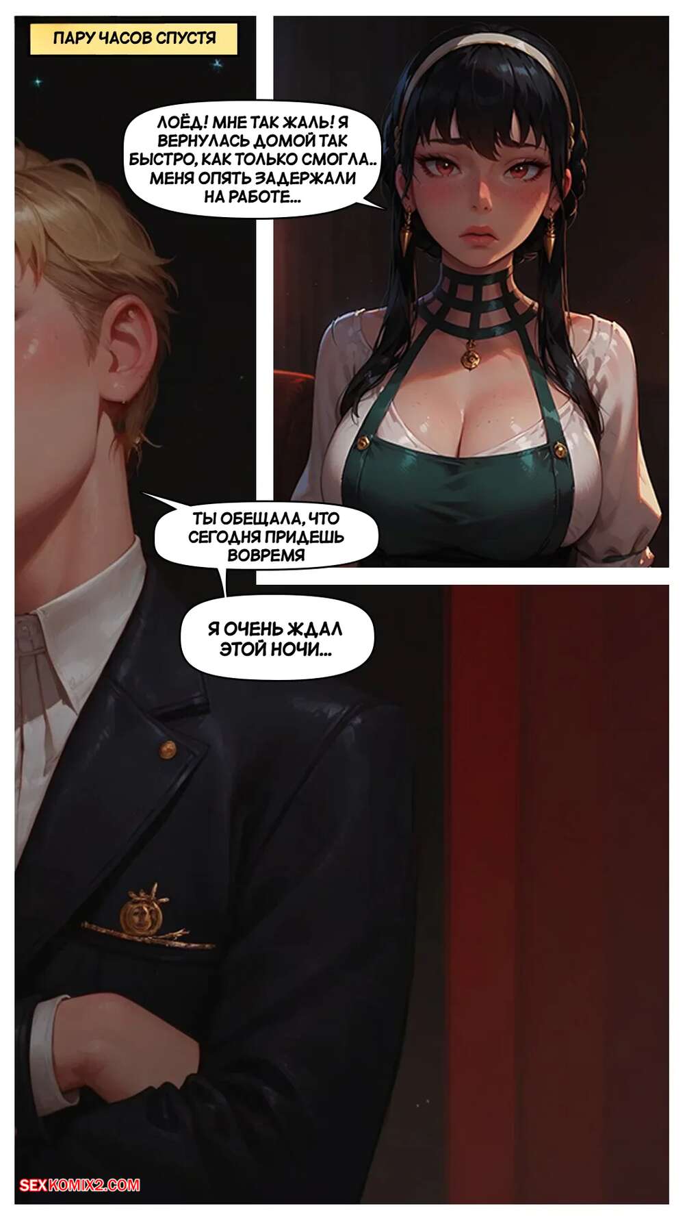 Порно комикс Spy x Family. Ночное свидание с Йор. Date Night with Yor Forger. LowFireStudios Горячая брюнетка Йор пригласила парня к себе, чтобы повеселиться. Красотка разделась и соблазнила своего дружка, после чего отсосала его член и дала ему себя выебать.