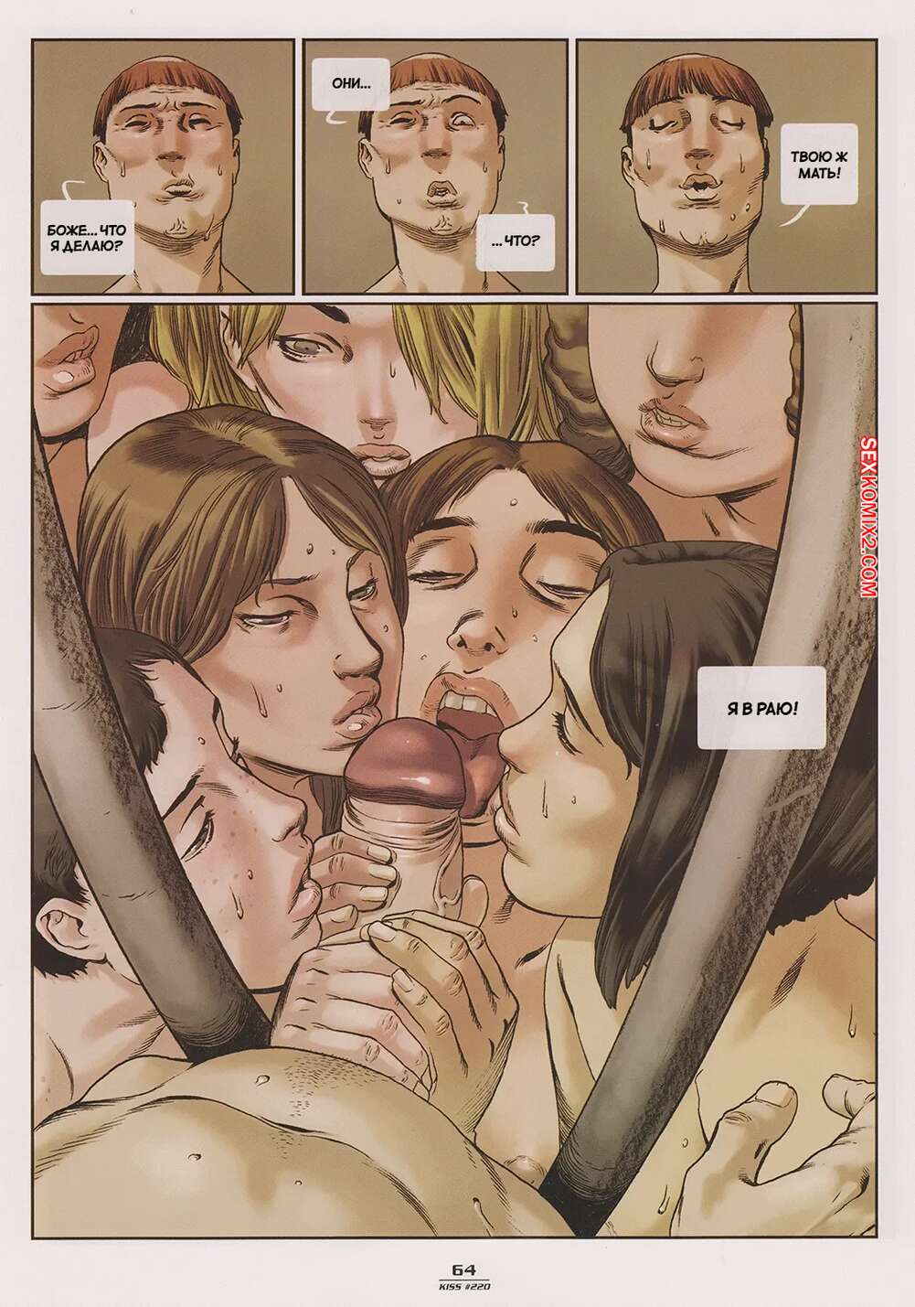 Порно комикс Акелларе. Часть 2. Akelarre. Manolo Carot Парень желал насладиться телом горячей милфы, но она решила дать ему удовольствие, о котором он никогда не мечтал. Перед парнем появилось несколько голых красоток, которые стали сосать его твердый член.