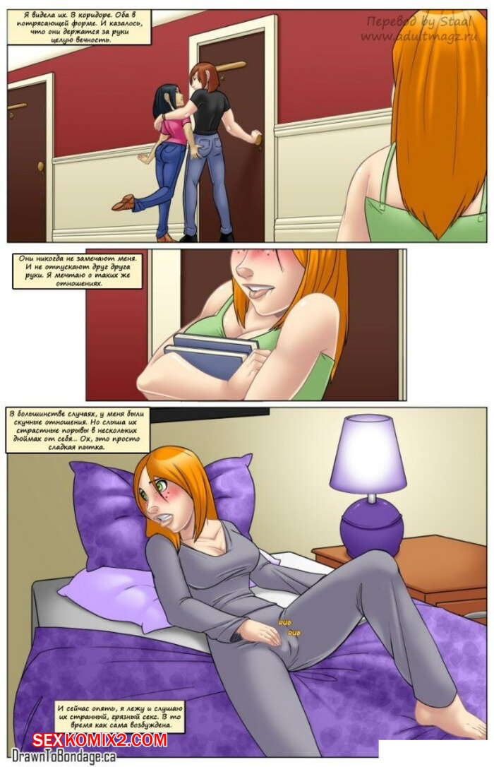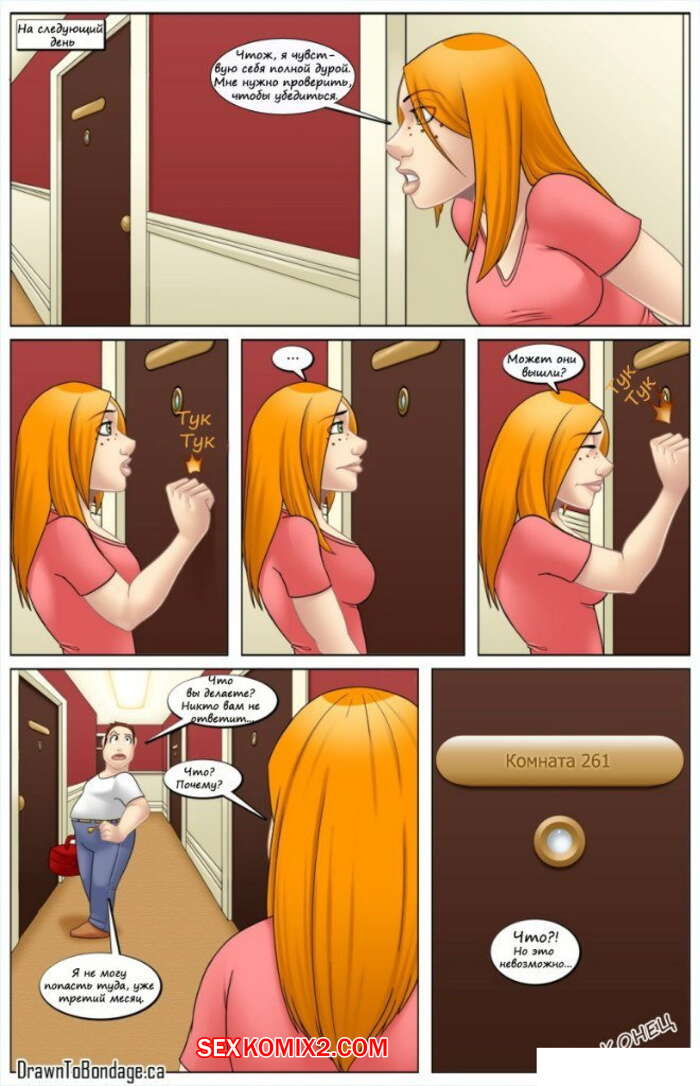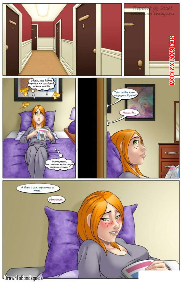 Порно комикс Комната 261 Девушка увидела как парень с девушкой заходят в комнату и они точно собираются поебаться. Рыжая красотка решила подрочить, думая о сексе этой парочки и внезапно она оказалась в комнате с ними, вся связанная. Они устроили отличную групповуху и внезапно наша героиня снова оказалась на своей кровати.