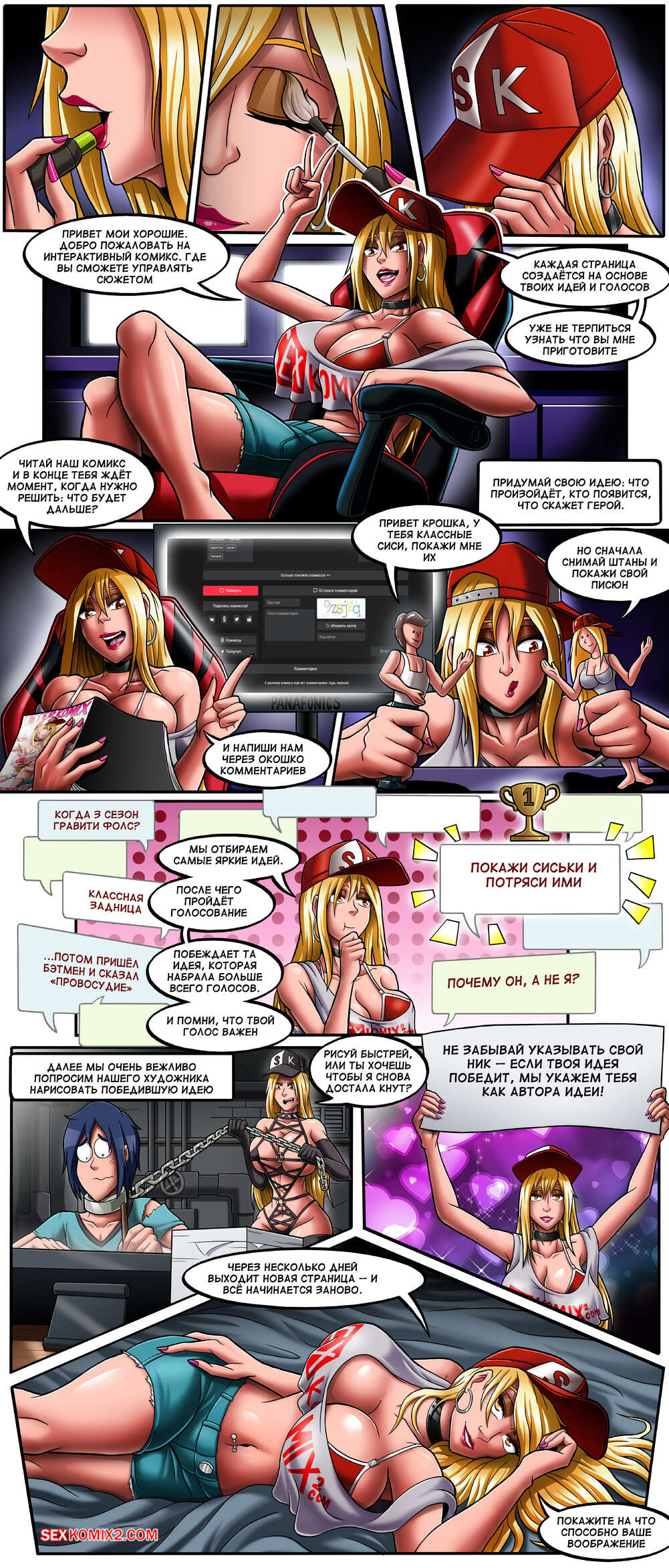 Порно комикс Inter Komix. Проект 1. Анастасия. sexkomix2.com. Эксперимент начинается. Что будет дальше? Решайте сами. Эксцентричный, мрачный, сюрреалистичный — каждый поворот сюжета зависит от вас. Это первый интерактивный комикс для взрослых, где история полностью формируется вашими идеями и голосами. В конце каждой страницы у вас будет возможность предложить свои идеи и проголосовать за понравившиеся комиксы сообщества.