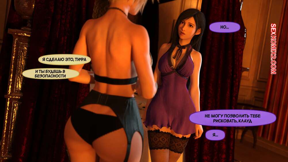 Порно комикс Final Fantasy. Тифа неторарэ. Часть 5. Tifa NTR. Scyxar Studios Красотки оказались в глорихоле, где их уже поджидало два черных члена. Красотки разделись и раздвинули ножки, после чего приняли в себя их и получили огромное удовольствие.