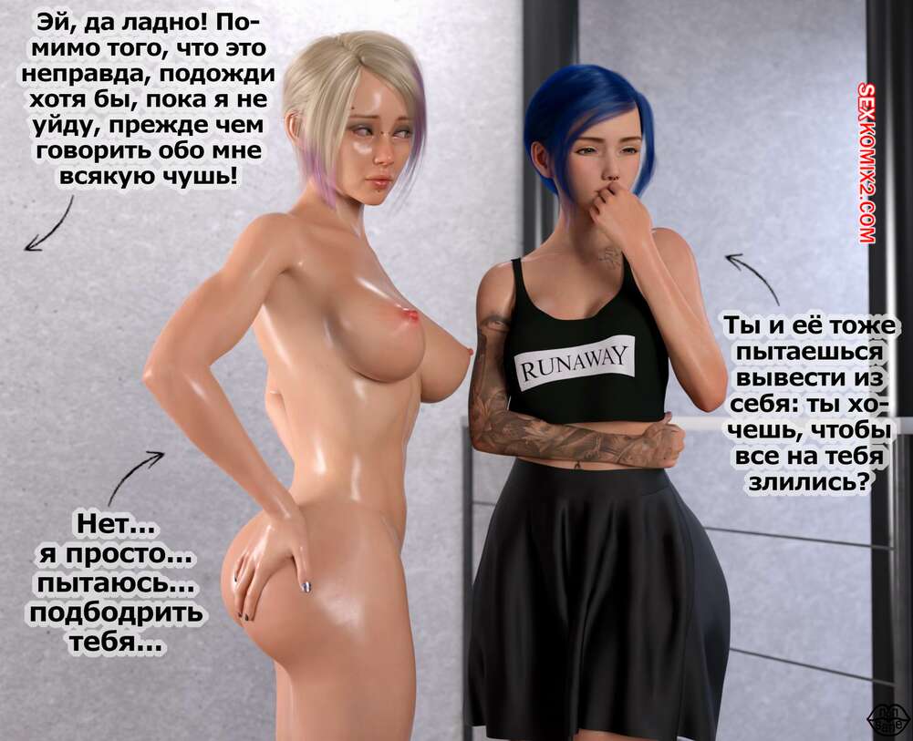Порно комикс Adicktion Therapy. Часть 6. Nonsane Брюнеточка с членом зашла в комнату к своей спящей подруге и та проснулась. Блондиночка решила пошалить и стала сосать стояк соседки, после чего раздвинула ножки и дала трахнуть себя в разных позах.