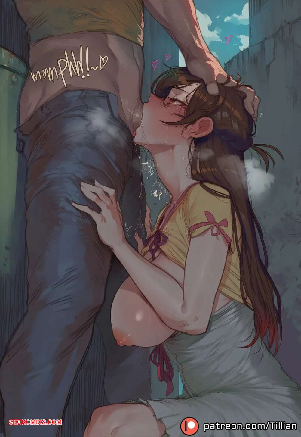 Порно комикс Chizuru Mizuhara. Tillian Горячая брюнетка встречается в темном переулке с парнями, желая трахнуться. Она встает на колени и сосет большие хуи парней, после чего дает себя выебать и заполнить ее спермой.
