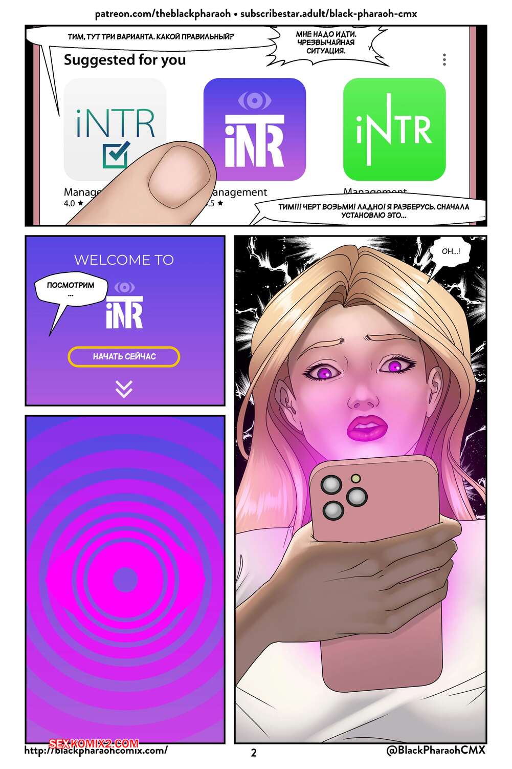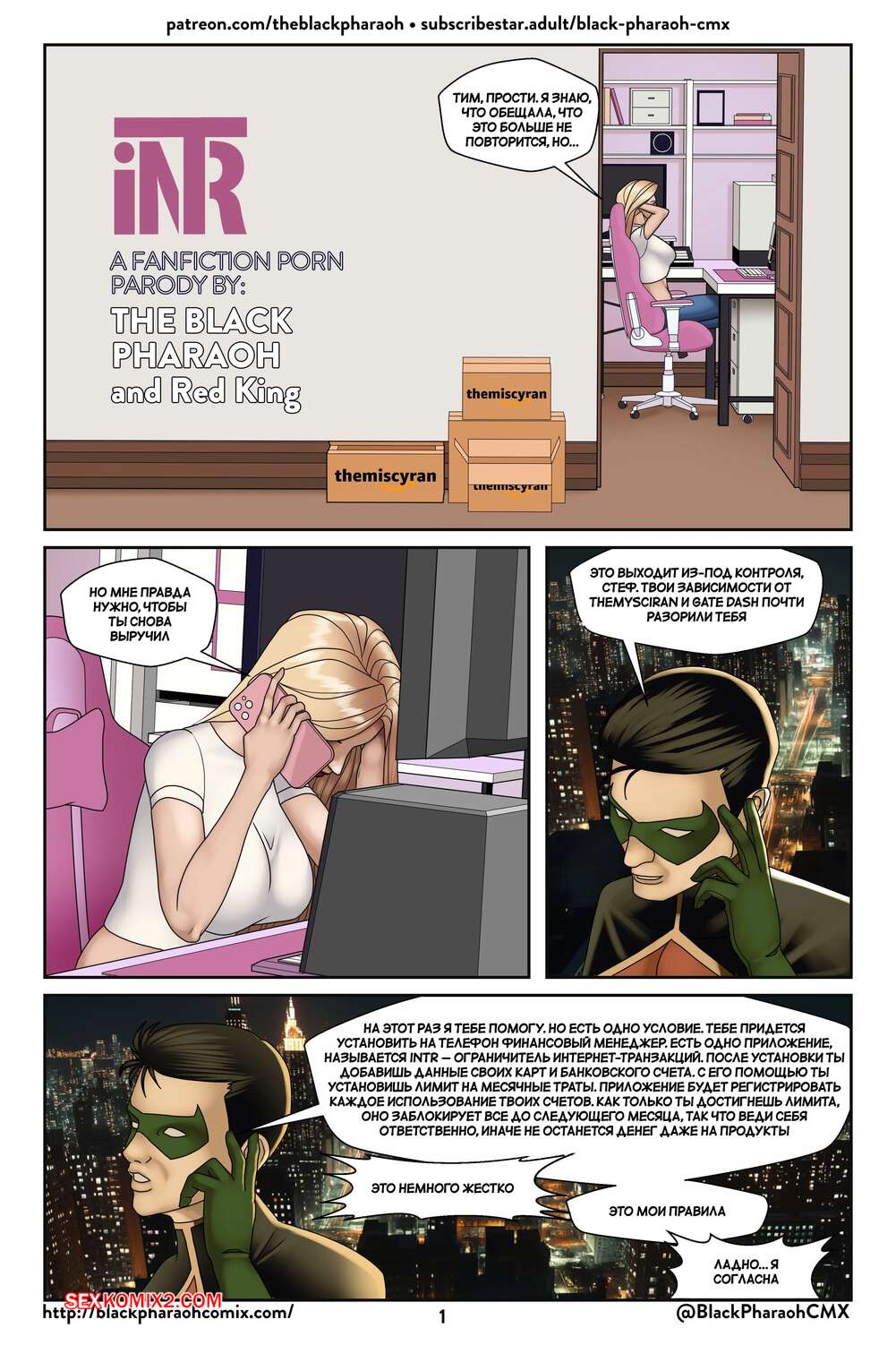 Порно комикс DC. Нетотарэ. Часть 1. NTR. The Black Pharaoh. Горячая блондинка подверглась гипнозу через телефон и отправилась на встречу с мерзким мужиком. Он ждал ее с твердым членом и девушка сразу стала у него отсасывать, после чего раздвинула ножки и дала себя выебать.