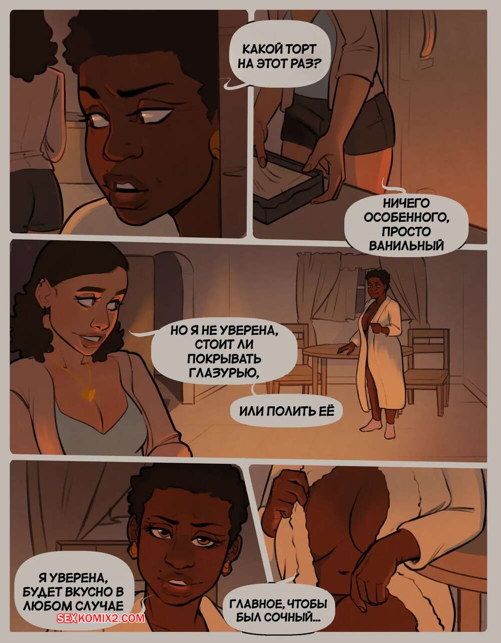 Порно комикс Воскресный торт. Часть 1. Sunday Cake. Alimony. Горячая темнокожая девушка дрочила пизденку у себя на кухне, но ей помешала ее соседка. Хозяйка дома решила повеселиться с подругой и стала сосать ее член, после чего дала трахнуть себя.