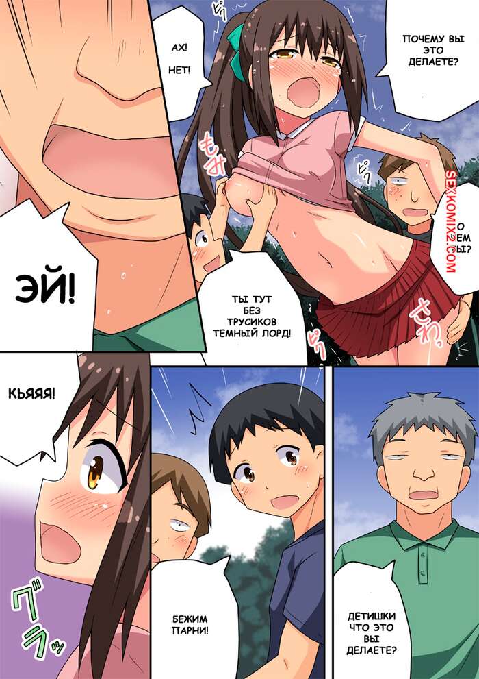Порно комикс Niizuma Nanaka no Roshutsu Nyuumon. Часть 1. Fukurou Naru Tori Горячая брюнетка гуляла по улице в откровенном наряде и на нее положили глаз несколько парней. Они стали домогаться до девушки, желая посмотреть поближе на ее сочные дырочки.