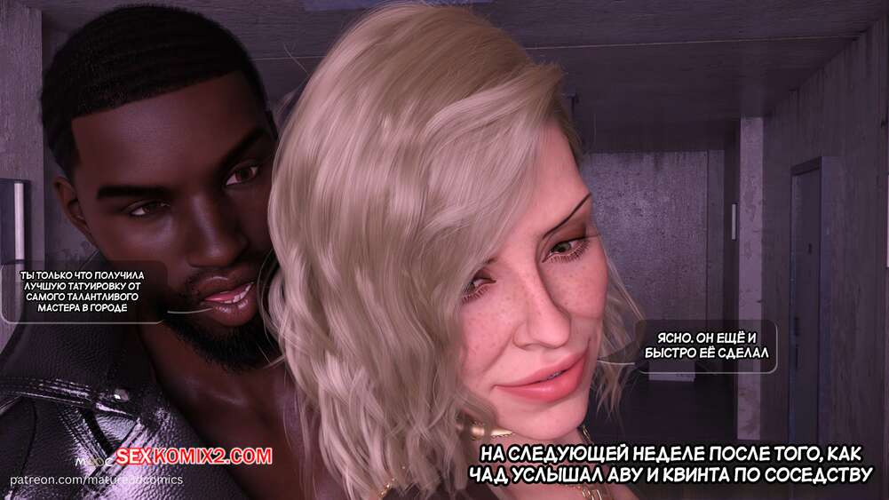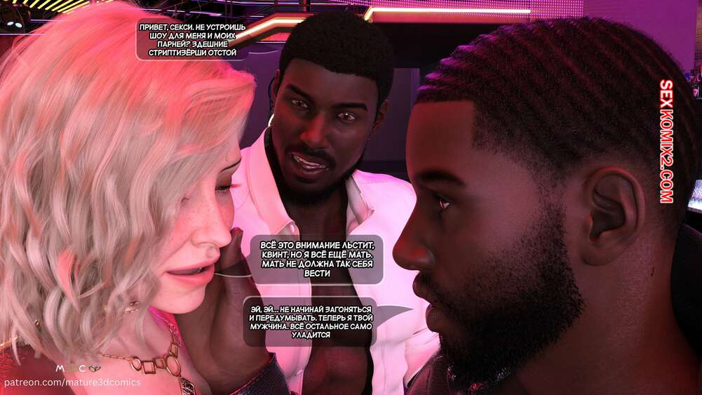 Порно комикс Грязный сосед. Часть 16. Naughty Neighbor. Mature3DComics Горячая милфа Ава отправилась со своим дружком Квинтом в ночной клуб. Там он убедил девушку раздеться и станцевать стриптиз, после чего ей занялись несколько темнокожих парней.