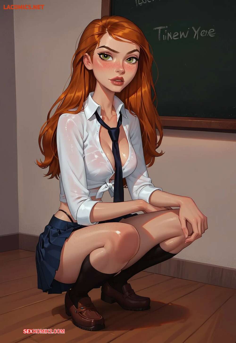 Порно комикс Gwen Tennyson vs College Prof. LowFireStudios Рыжая красотка Гвен очень возбуждена и хочет трахаться. Она разделась перед своим дружком и стаал сосать его член, после чего раздвинула ножки и дала себя выебать.