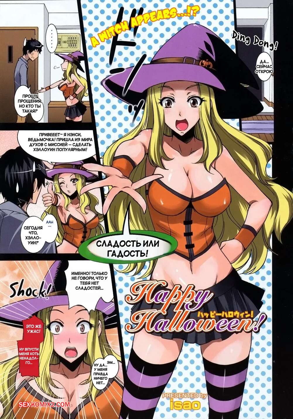 Порно комикс Счастливого Хэллоуина. Happy Halloween. Isao. Горячая блондинка пришла к парню домой в канун Хэллоуина. Она не стала долго думать и встала на колени, чтобы отсосать хуец парня, после чего раздвинула ножки и дала ему себя выебать.
