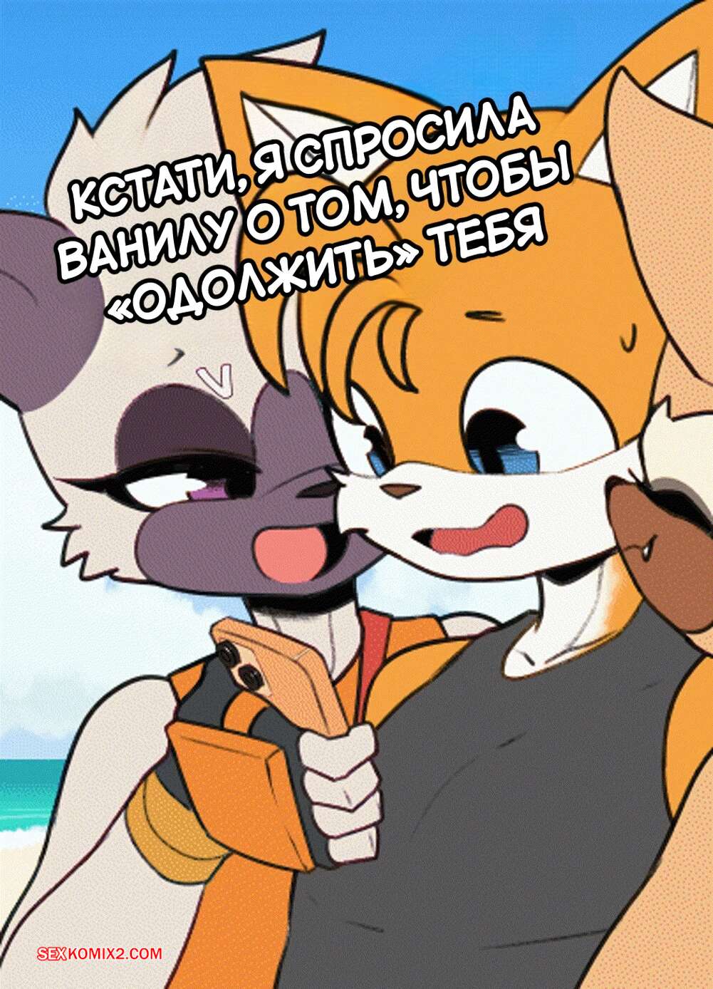 Порно комикс Соник. Майлз Тейлс. Burgerkiss Аппетитные красотки встретили Тейлза на пляже и стали его соблазнять, желая пошалить. Девушки разделись и отсосали хуец стеснительного парня, после чего дали себя выебать.