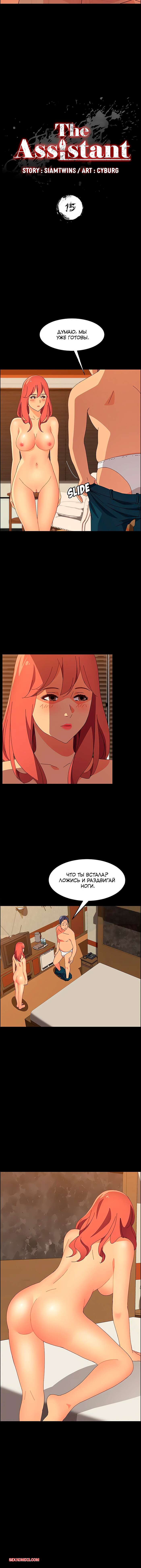 Порно комикс Ассистент. Без цензуры. Часть 15 Старик ласкает пальчиками пизденку Анастасии и делает ее влажной. Он говорит красотке лечь на кровать и раздвинуть ножки, после чего вставляет в нее член, чтобы выебать красотку.