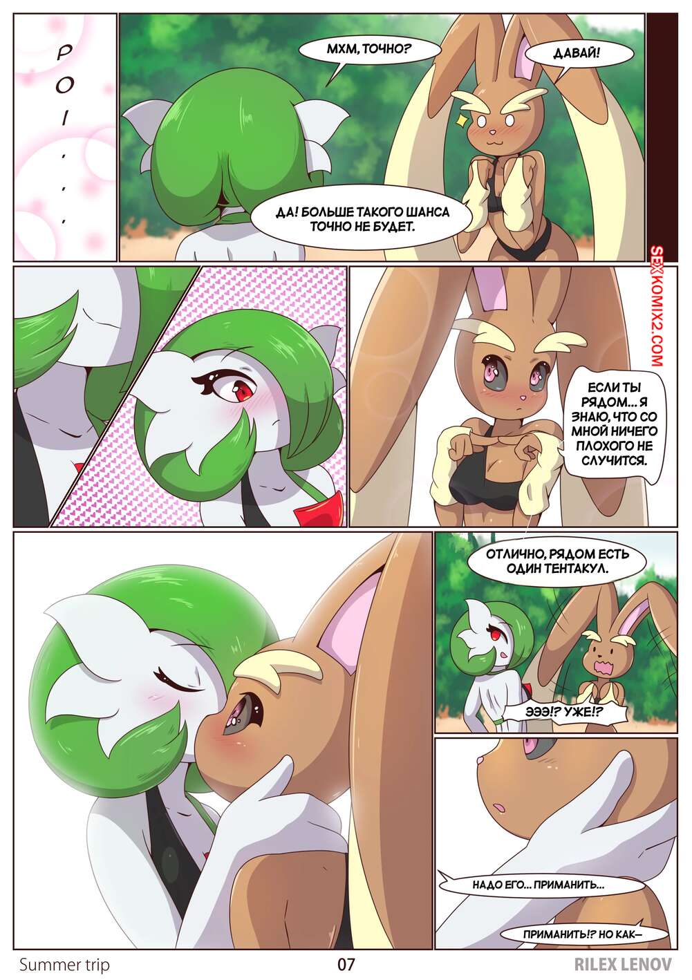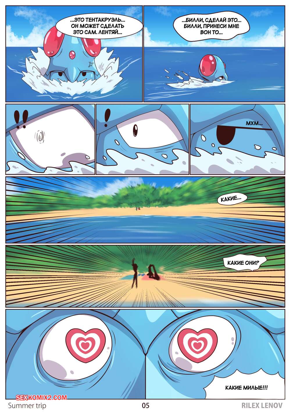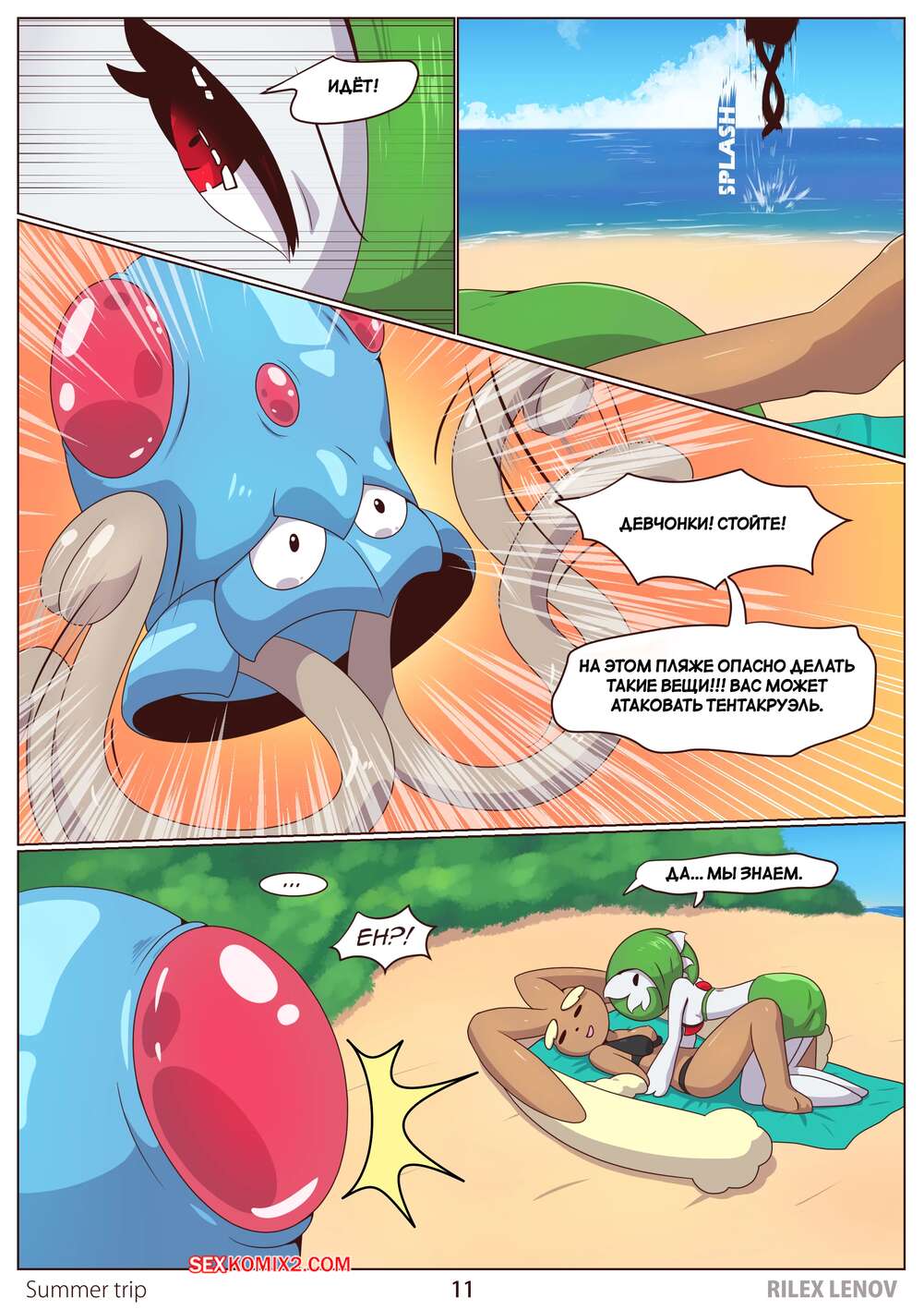 Порно комикс Pokemon. Летнее путешествие. Viaggio estivo. Rilex lenov. Две горячие подруги решили расслабиться и отправились на пляж в жаркий день. Из воды вылезло существо с тентаклями, которое схватило девушек и стало их трахать во все дырочки.