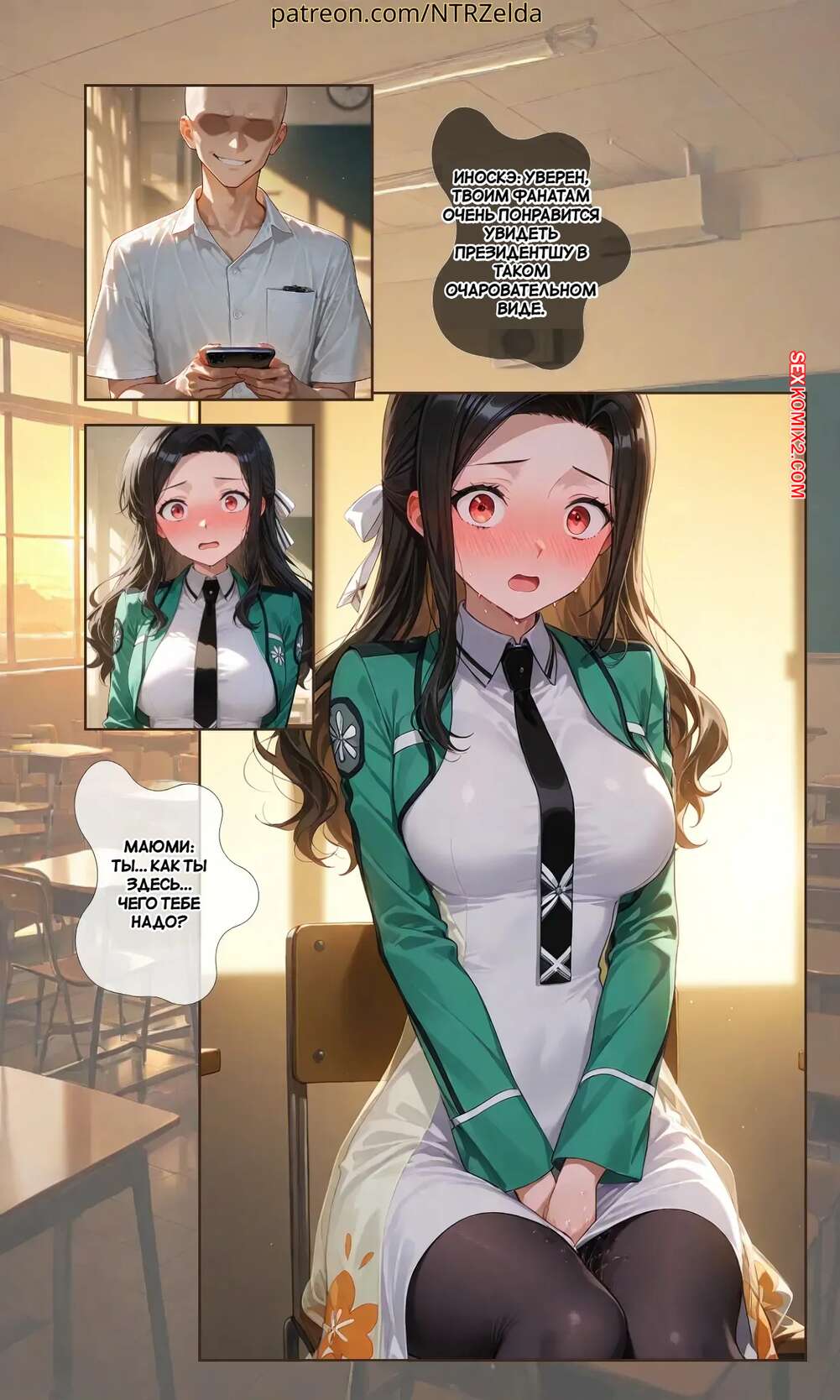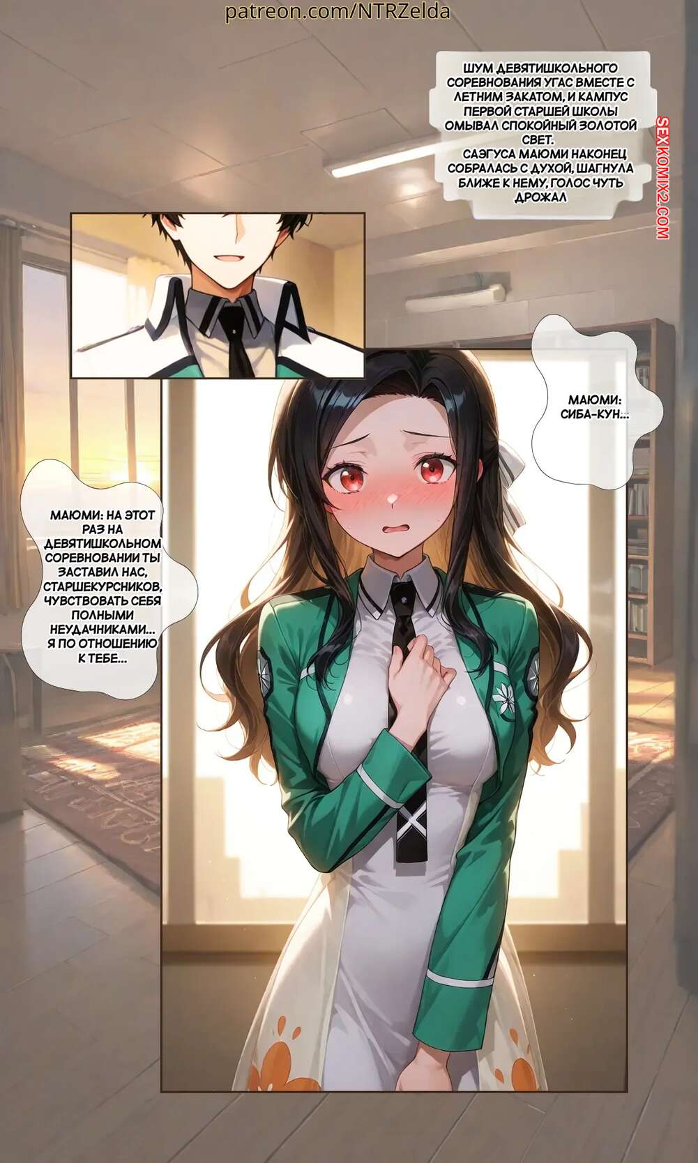Порно комикс За закатом. Маюми. Beyond The Sunset. Mayumi. NTRzelda. Парень остался наедине в классе с горячей брюнеткой и стал лапать ее большие сиськи. Красотка возбудилась, после чего встала на колени и взяла в ротик член своего дружка.