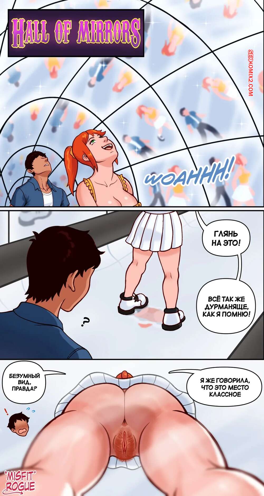 Порно комикс Свидание с Рене. A Date With Renee. misfitrogue. Парень пригласил рыжую красотку на свидание и решил сделать ей сюрприз. Они отправились в парк аттракционов и пошли в зеркальную комнату, где парень стал разглядывать что у девушки находится под юбкой.