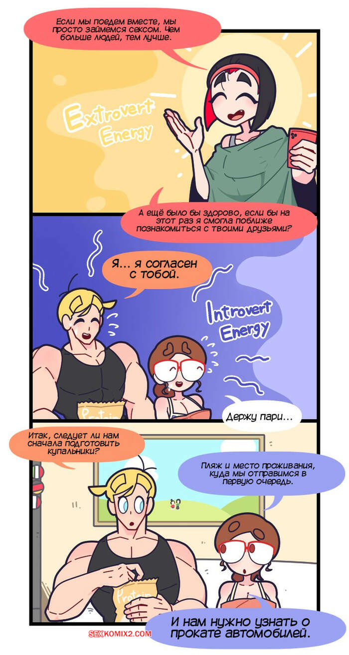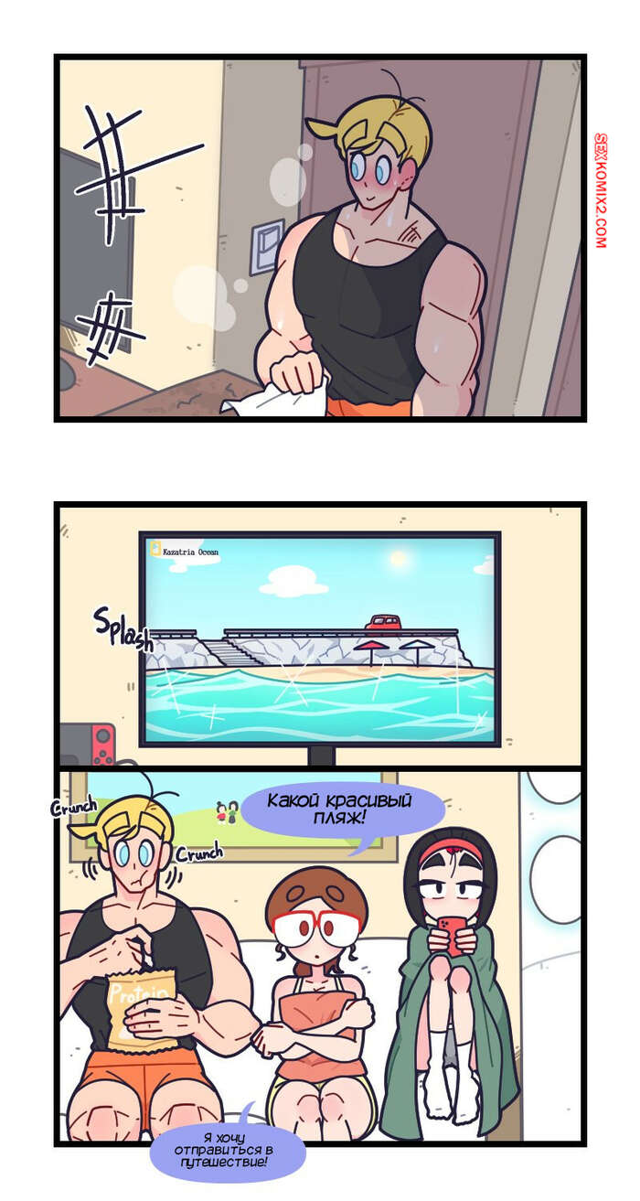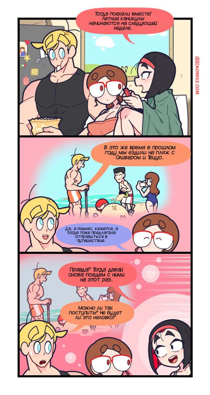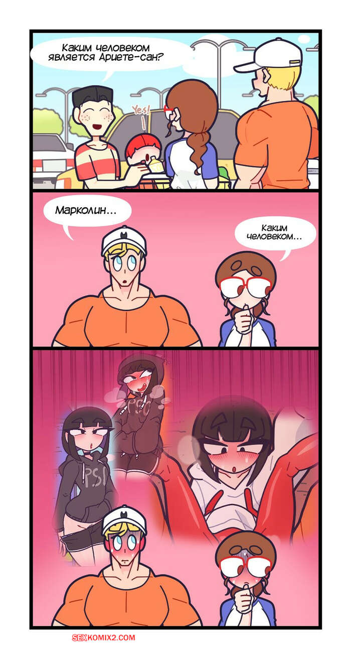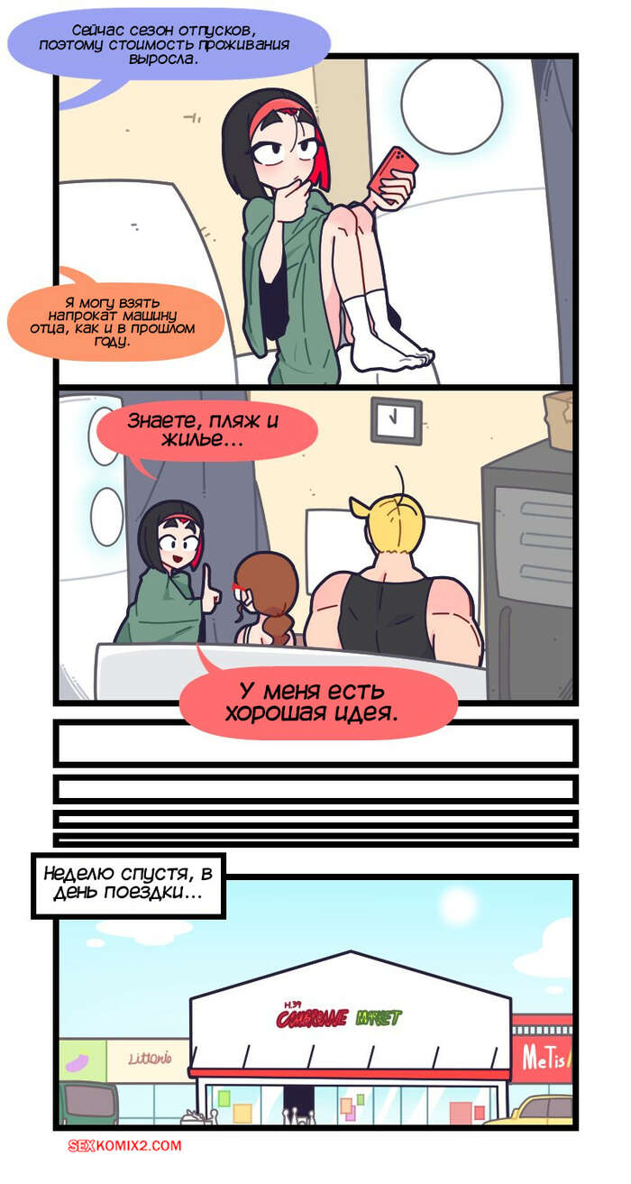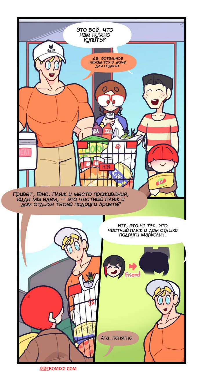 Порно комикс Привет Марколин Р. Часть 19. Hello Marcolin R. Kozatchu Трое друзей смотрели телевизор вместе и увидели рекламу курорта. Они решили отправиться на отдых и поспешили воплотить в действие свой план, пригласив еще несколько друзей.