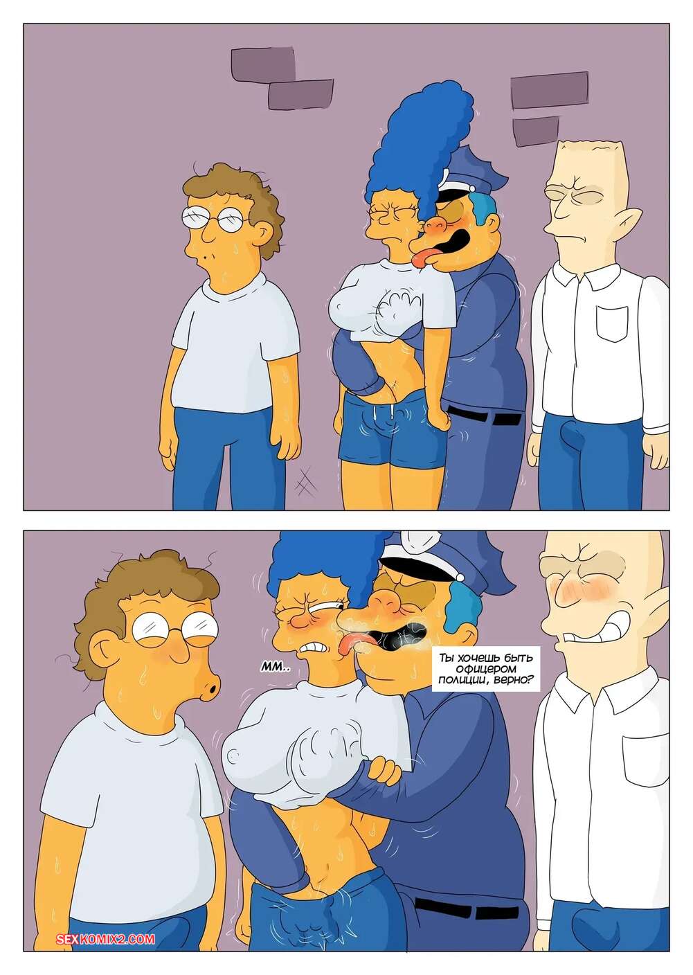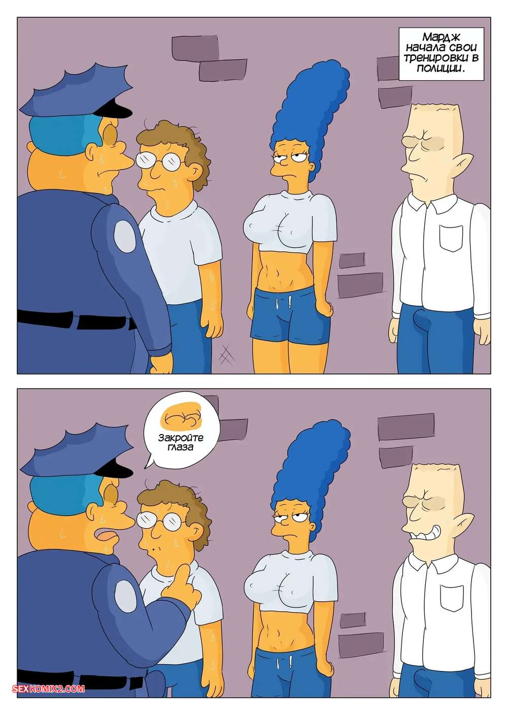 Порно комикс Симпсоны. Мардж полицейская. Marge Police. Marecattus Бандит напал на Гомера и Мардж в темном переулке и трахнул красотку, пока Гомер просто отвернулся. Мардж это не понравилось, поэтому она решила стать полицейской и отправилась в академию для обучения, где оказалась единственной женщиной.