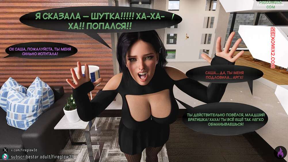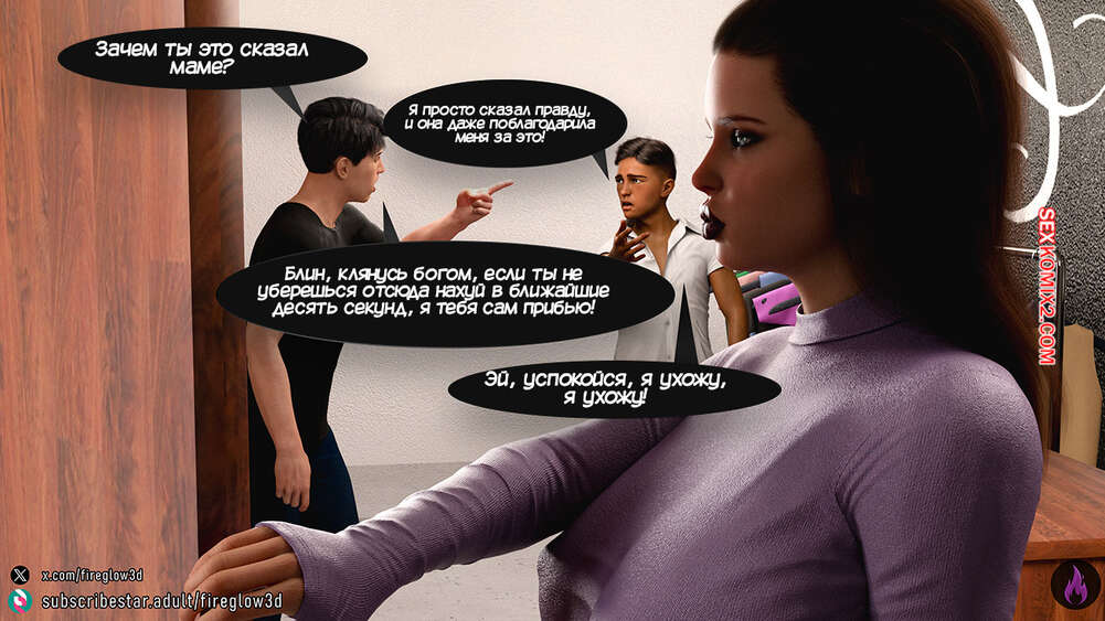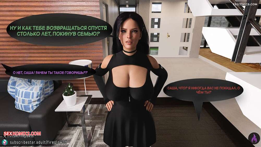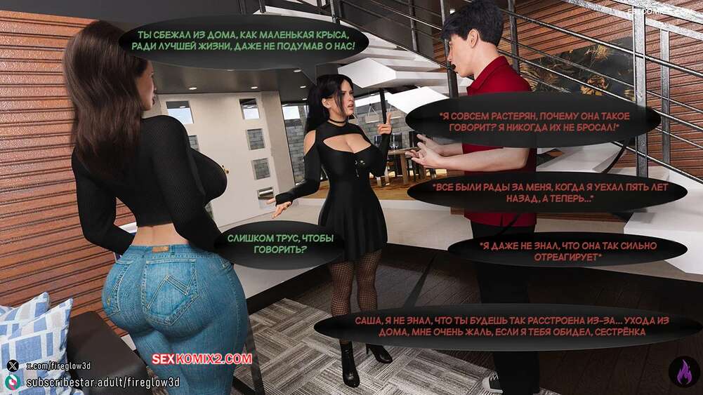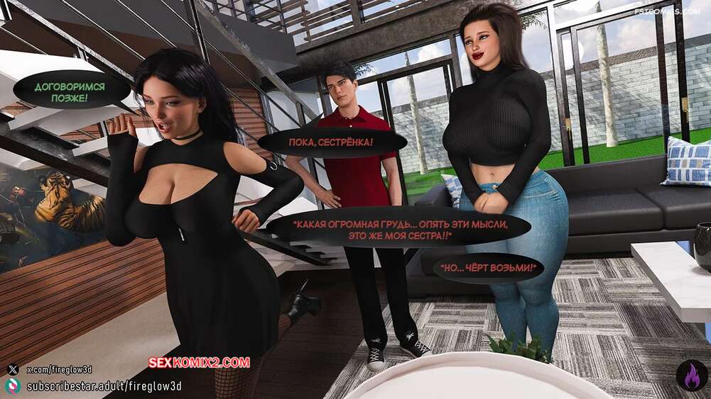Порно комикс Табу обнимашки. Часть 3. Taboo Snuggles. Fireglow3D Макс спустился вниз, чтобы поздороваться со своей сестренкой. Девушка шутит с парнем и целует его в щеку, а он не может отвести взгляда от ее больших сисек.