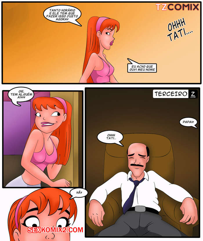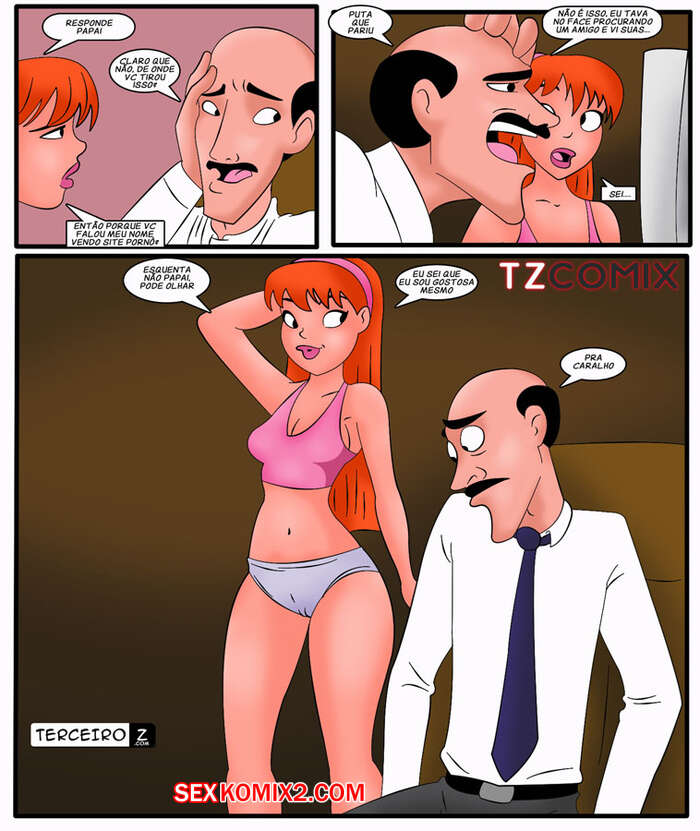Порно комикс Семейка порно. Часть 1. Тайный просмотр порно. Familia Foda Рыжая доченька решила посмотреть порнушку перед сном, но обнаружила, что батя выключил интернет. Она пошла к нему попросить включить и заметила, что тот со слюнками смотрит на нее. Она предложила папке отлизать, против чего он был не против, а сама ему немного отсосала..