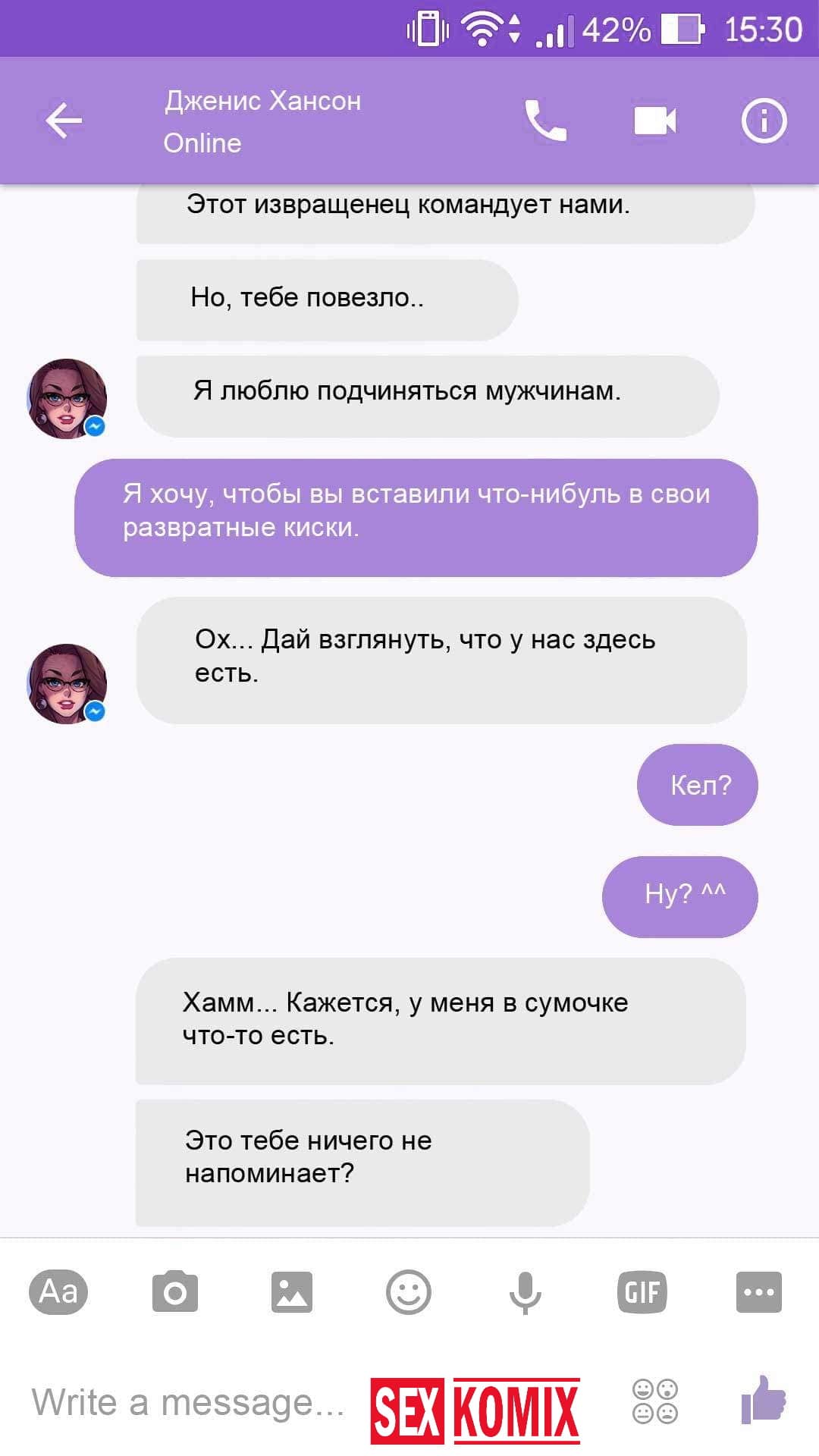 Порно комикс Чат с Дженис. После того как отец Филиппа отлично по развлекся с его женой Дженис и её сестрой, он отправился домой. Из дома переписывается по чату с женой, девушка жалуется на то, что её муж её достал и постоянно раздражает. Чтобы снять напряжение Она решила заняться сексом через чат по фотографиям, она отправляла мужчине свои обнаженные фото, и в самый разгар к ней присоединилась и её сестра. И фото стали ещё горячее, девушки начали разврат гладить друг другу и целовать нежные тела. Мужчина перевозбудился и кончил на их обнаженные фото.