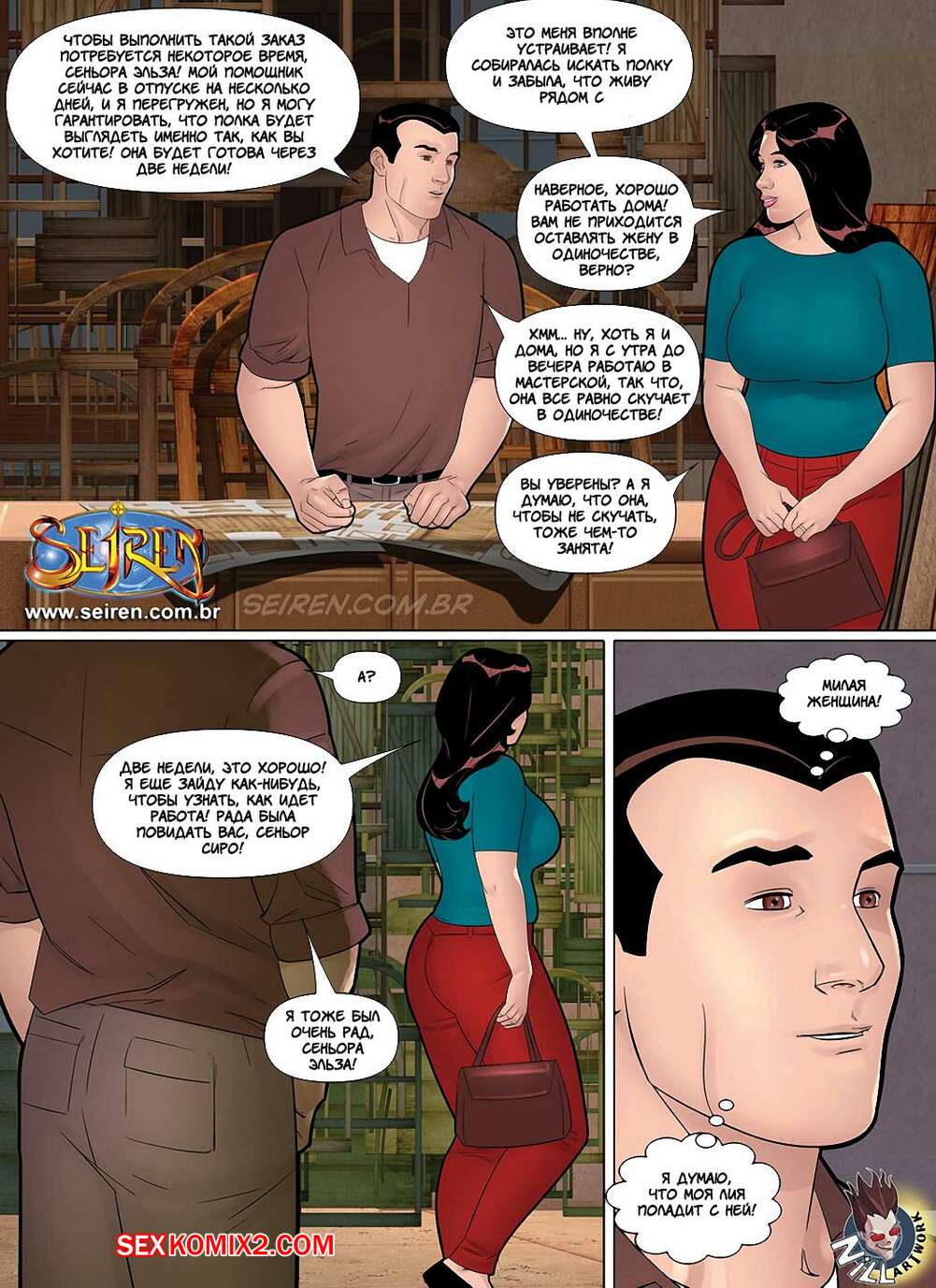 Порно комикс Приключения Лии. Часть 13 У рыжей милфы появились новые соседи, замужняя пара. Мужик стал обращать внимание на полуголую соседку и решил сходить к ней. Там красотка тоже обратила на него внимание и сняла перед ним трусики. Мужик отлизал ей пизду, а затем выебал в задницу своим большим хуем.