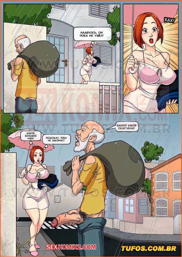 Порно комикс Анаконда. Часть 3. Красавица и бомж. Женщина увидела бродягу и решила ему помочь, она предложила ему еду и старую одежду мужа. А когда увидела размер его хуя, захотела еще удовлетворить его в сексуальном плане.