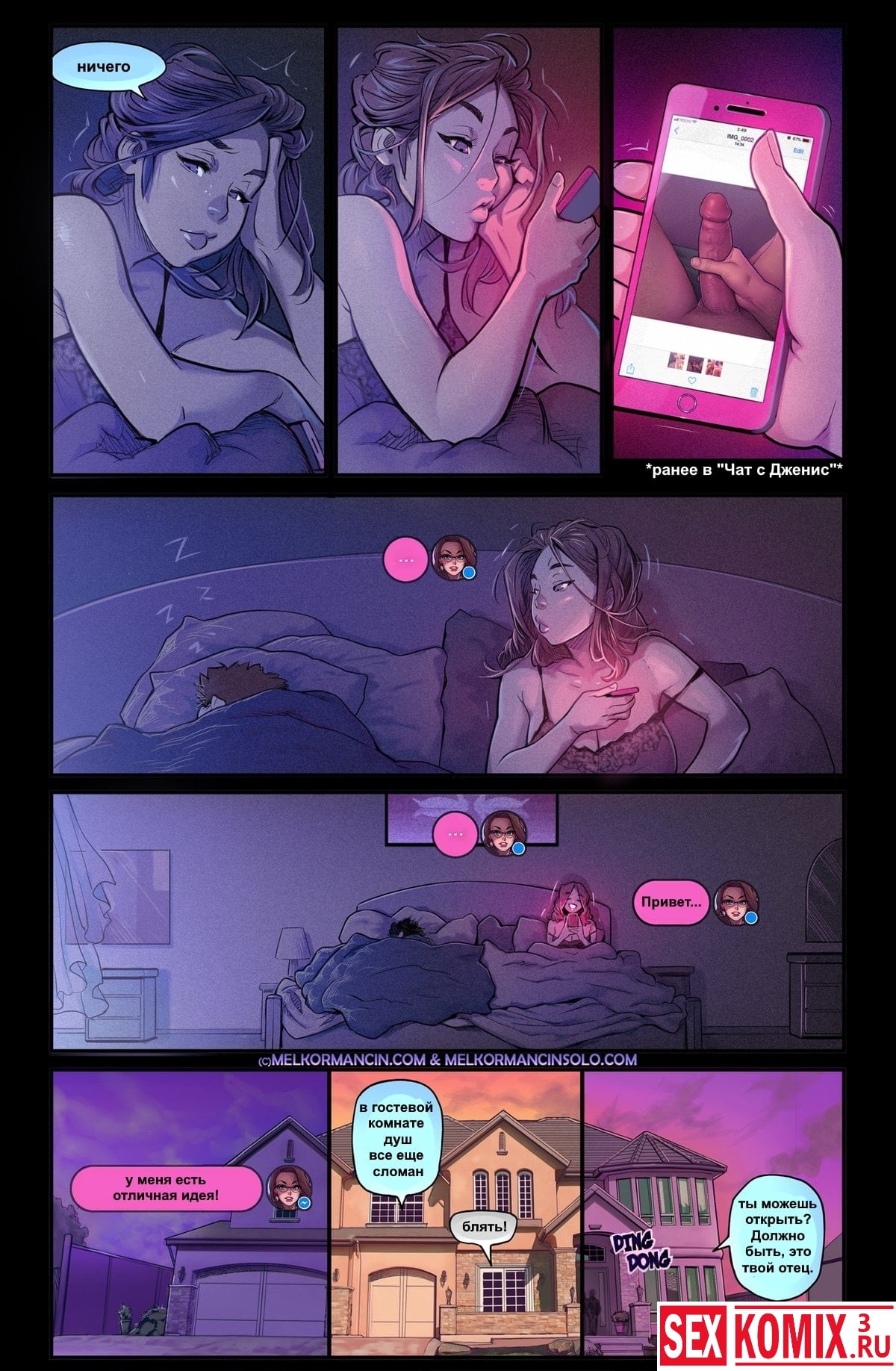 Порно комикс. Похотливый свёкор. Часть 4. Сластёна. Джанис спит, и видит эротический сон, под спокойную музыку, в которой поют про леденец. Ей снится как два леденца пронзает её, то в рот, то в киску, то в задницу. Она просыпается, и не может понять, почему ей это приснилась. Девушка хотела рассказать о своем сне мужу, но он не хотел её слушать. Поэтому она написала его отцу, с которым периодически занимаются сексом. После ночной переписки, Дон решил наведаться в гости к Джанис и прихватил с собой своего хорошего приятеля Сэма. Девушка была удивлена, что они пришли вдвоём, ведь во сне её трахало именно два леденца.